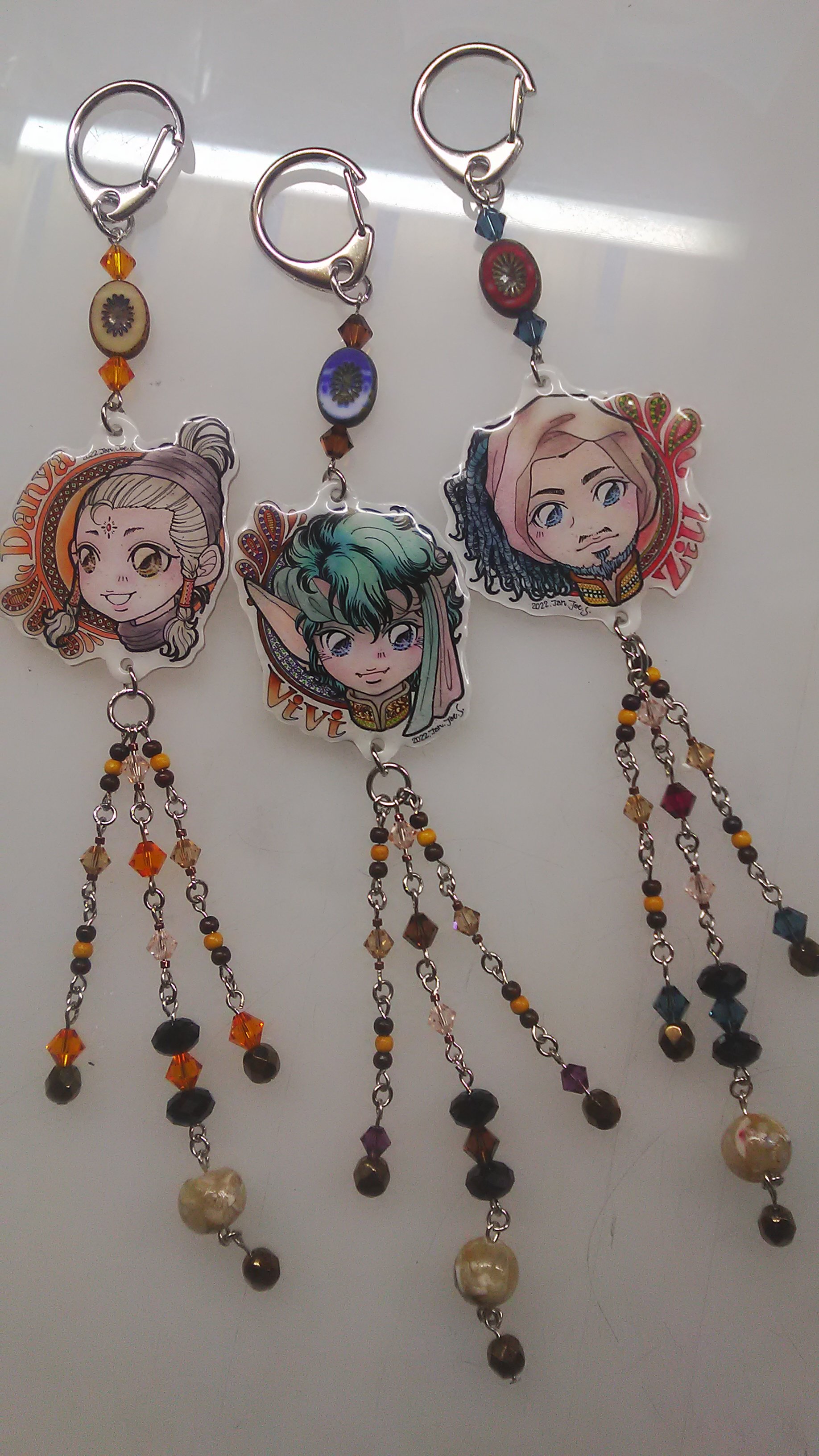 プラ板(油性ペン+サインペン)→オーブントースターで縮めて→レジンでコーティング+スワロフスキーや天然石を着けたら『完成』✨