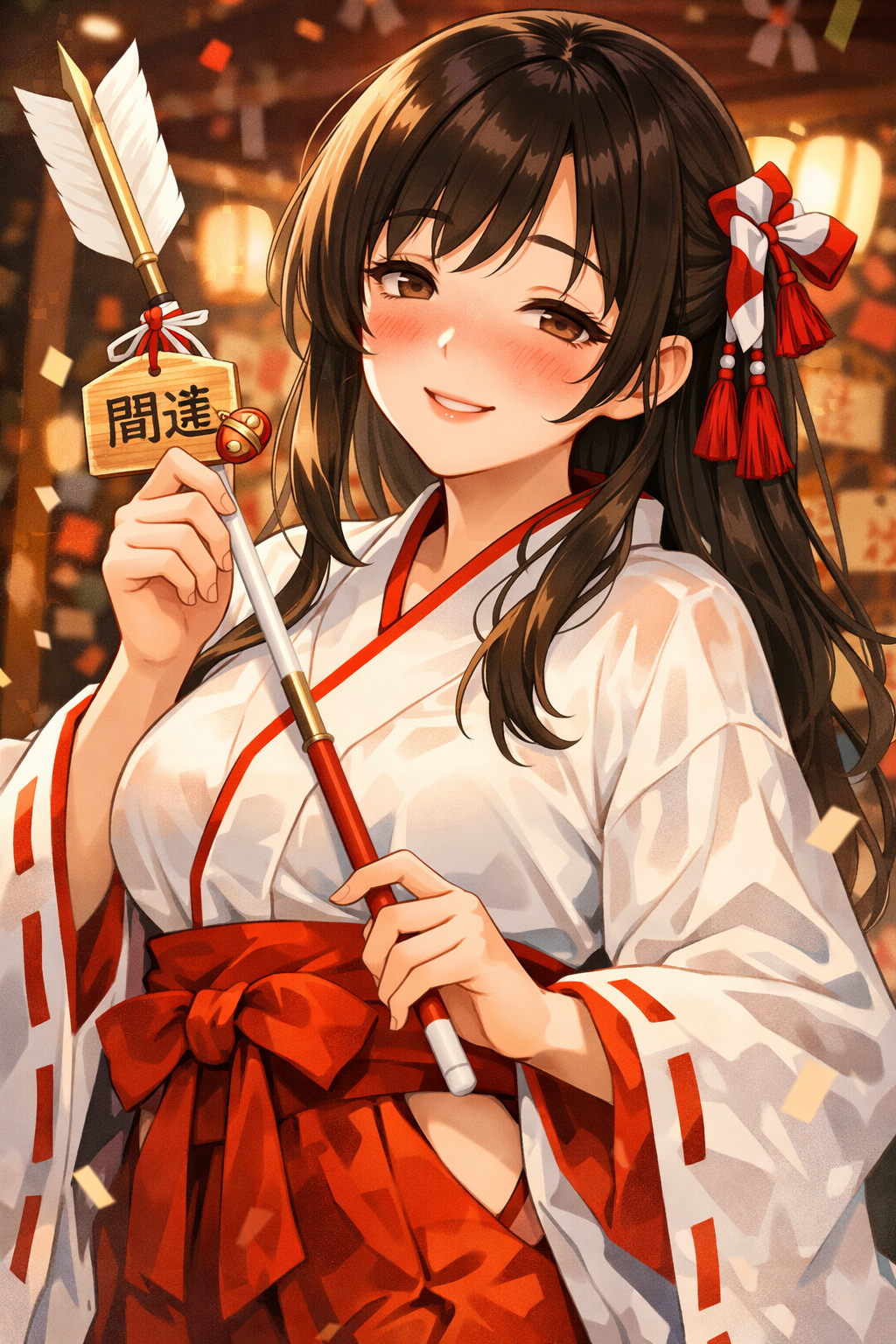 あれれ、神聖な巫女さんなのに、まるで酔いどれ天使みたいだね。もしかして、恋煩いを隠してるのかな?