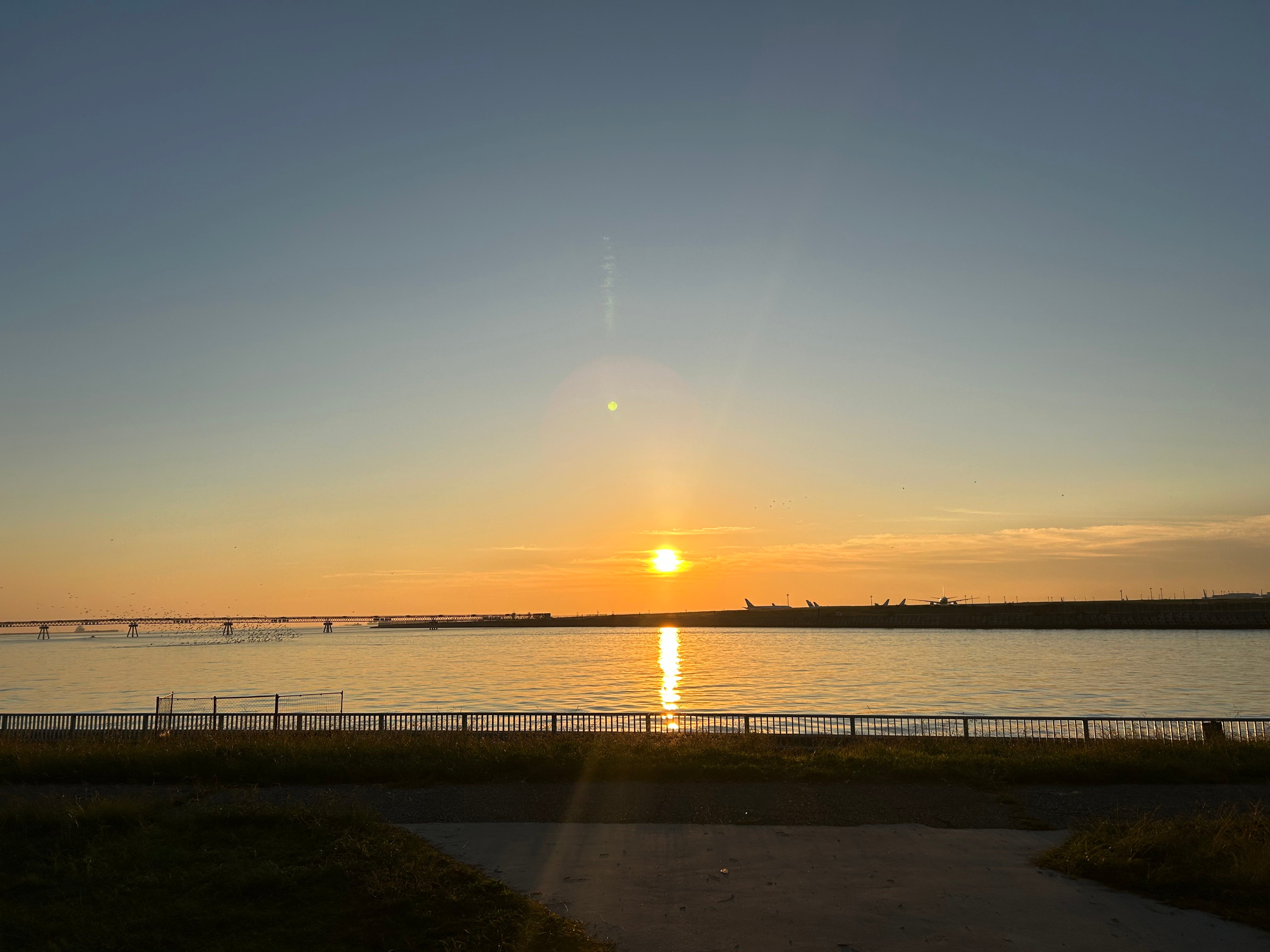 ちょうど海から上がる朝日が見えて、めちゃくちゃ綺麗。