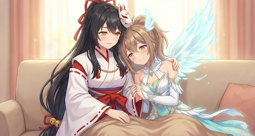 イラストは最終話で白神 詩音と叶多 いのりが寄り添って休んでいる。 イメージイラストです。