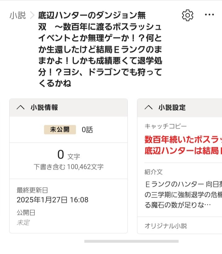 昨年から書いては消してを繰り返してた現代ファンタジー作品がようやく10万字56話まで書けました。