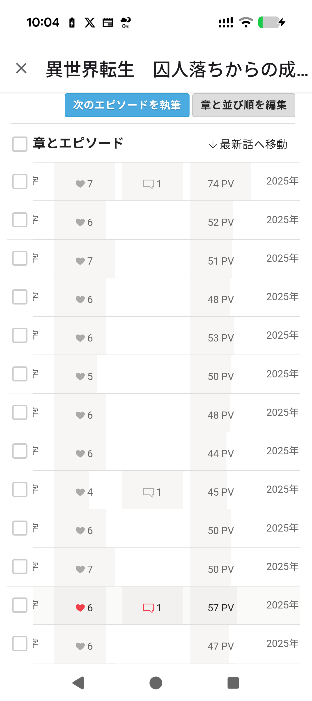 なんと2話目と平均PVがほぼ同じ。つまり2話目を読んで頂けたな方は、数値的には90%以上の方が継続して読んでくれています。