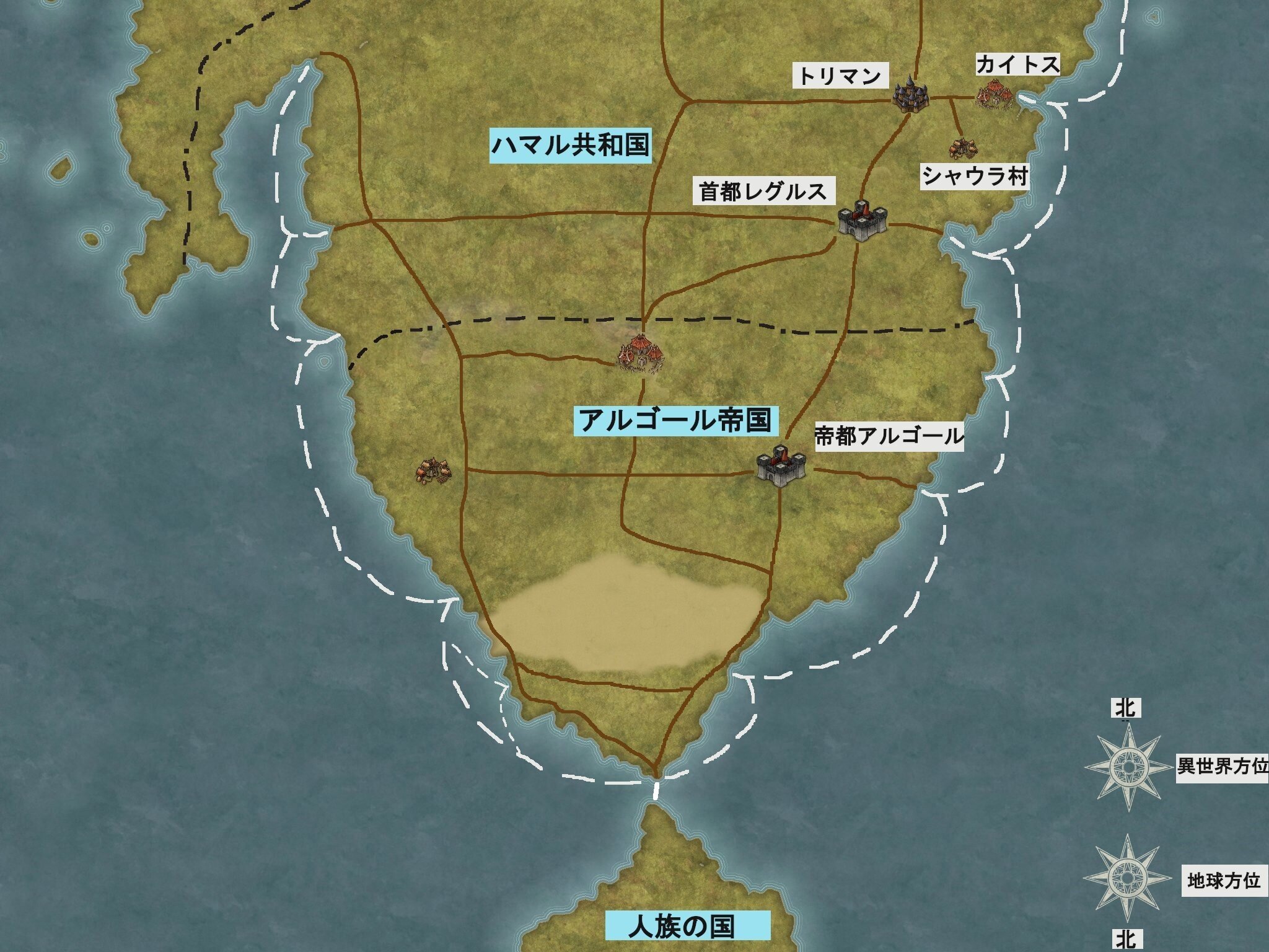 上が北になりますが、これは異世界での方位。