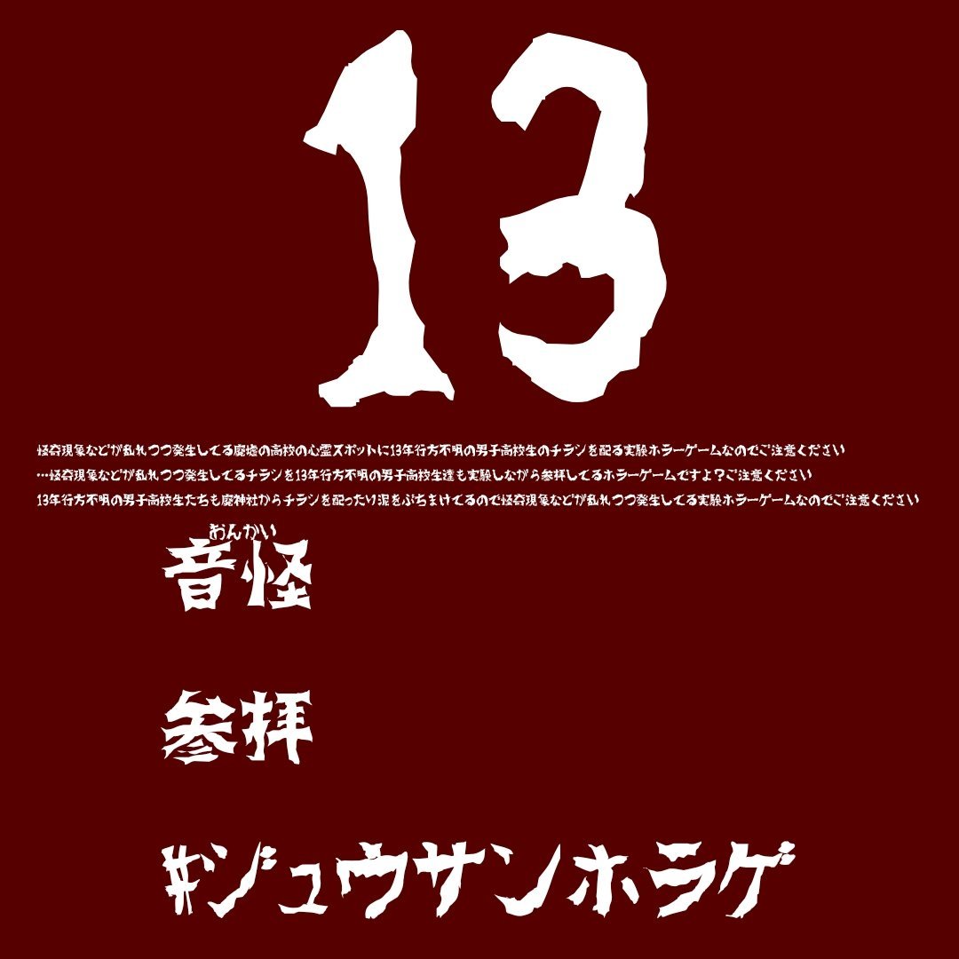 https://kakuyomu.jp/works/1681862217084752902713年行方不明の男子高校生たちも廃神社からチラシを配ったり泥をぶちまけてるので怪奇現象などが乱れつつ発生してる実験ホラーゲームなのでご注意くださいは、130のエピソードになってまして、キャッチコピーが、#ジュウサンホラゲ です