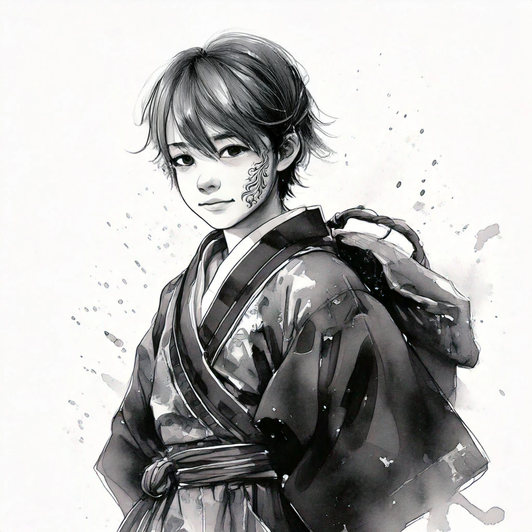 博麻の一人息子。死別した母の稲実(いなみ)に似て、穏やかな性格。しかし有事には勇敢な行動をとり、博麻とともに山で狩猟を行うこともある。百済から避難してきた父娘、ラジンとウンノを甲斐甲斐しく世話をする優しき少年。後にウンノとともに、父博麻と同じ朱の刺青を左頬に刻む。