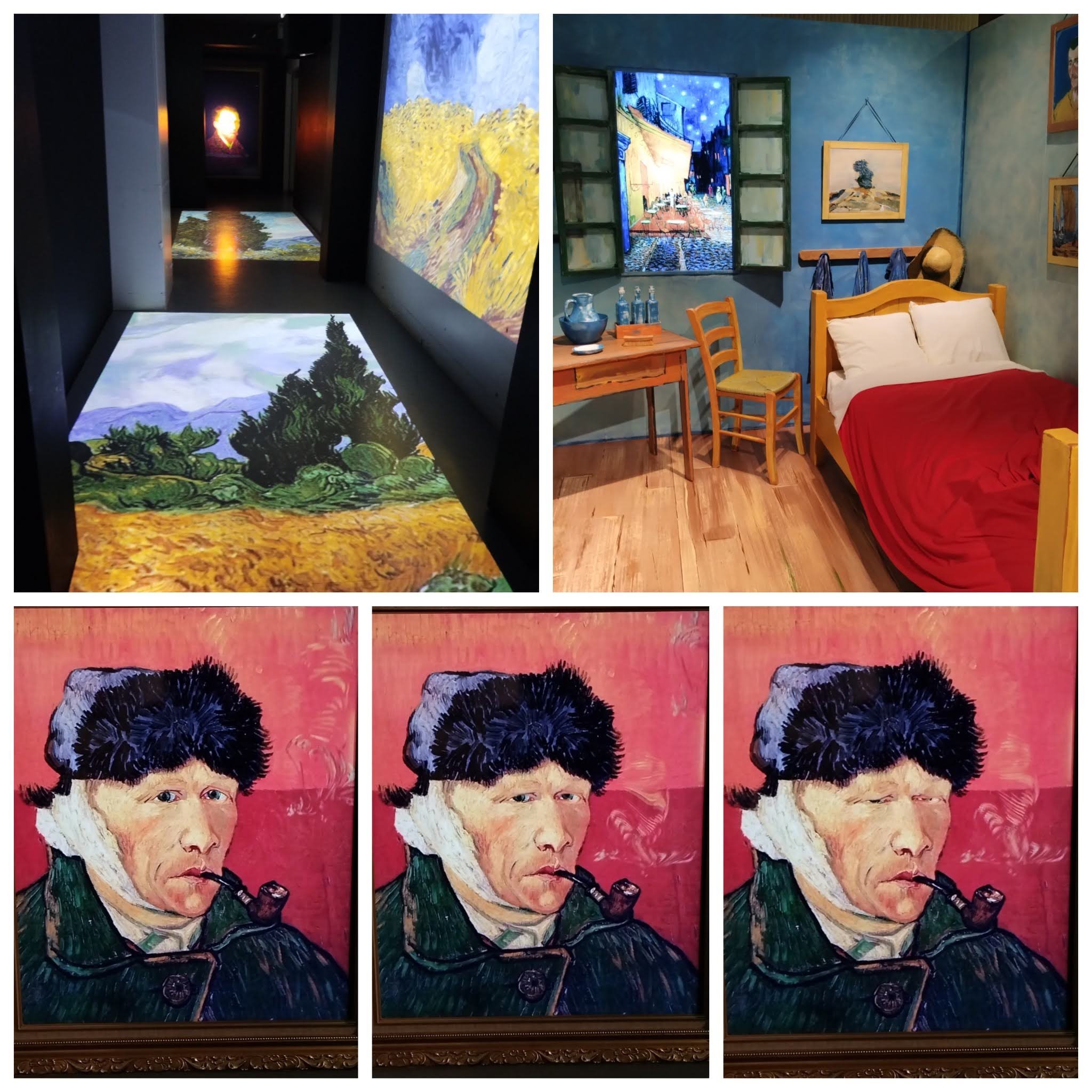 右上:ゴッホの寝室が描かれた絵画を再現した一角、窓はデジタルで絵が切り替わる仕様になっていました。お部屋のカラーリングがかわいい。