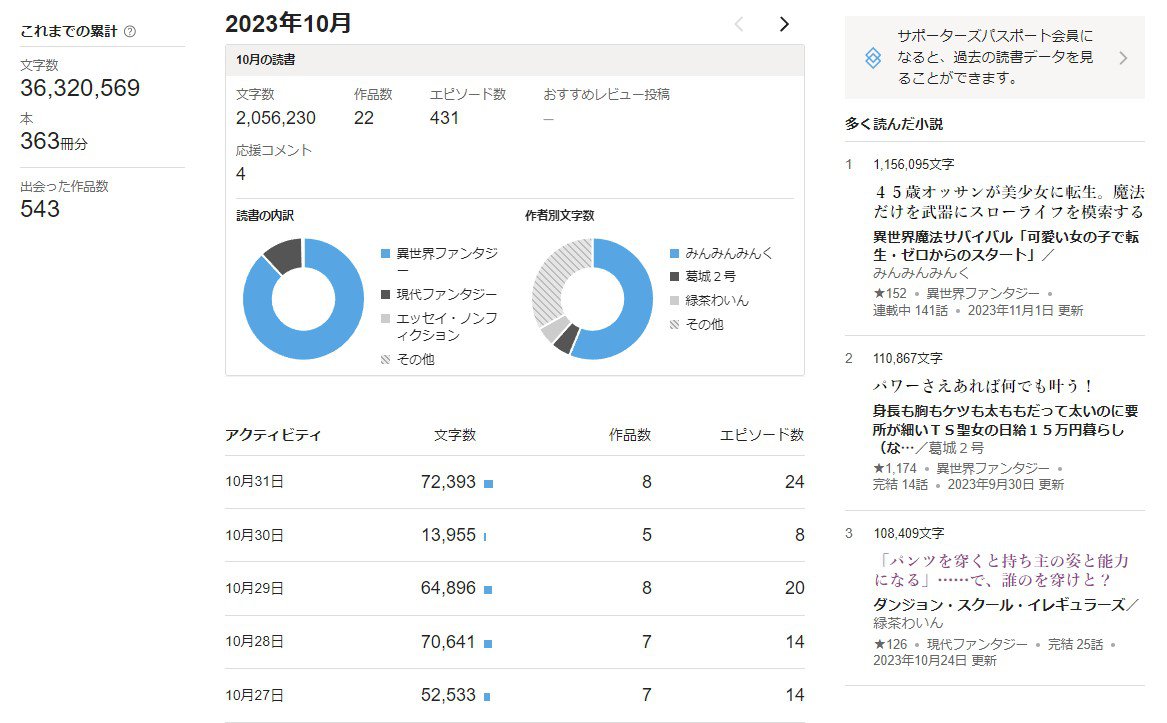 継続して読んでいる作品がほとんどで、月後半になって新しく1作読み始めた程度。