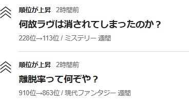 現代ファンタジー週間 910位→863位
