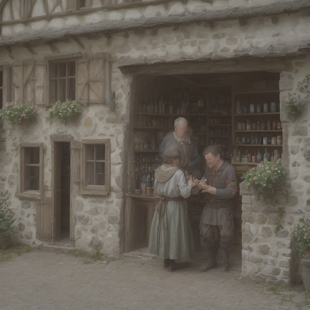 AI画像。異世界転生後の田舎の小店舗。挿絵に使います。