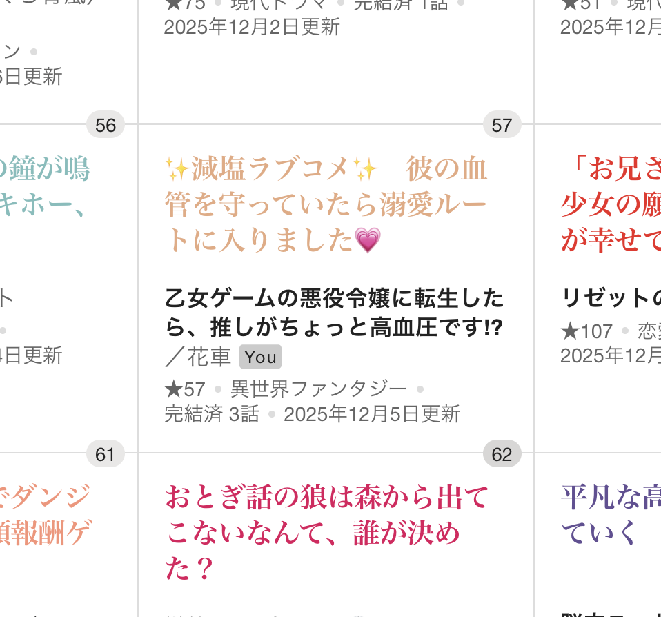 あの作品、星は39しかないのにコンテスト用のランキングでは20位に入ってたんですよね。介護のバタバタであんまり宣伝できなかったんですが(^_^;)