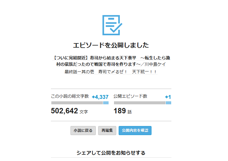 これも全て、読んでいただける皆様のおかげです。ほんっと書いてて何の反応も貰えない時なんて何度筆を折りかけたか分からないですからね。そんな時に戴ける「エピソードを応援」という通知にどれだけ心を救われたか……感謝しかありません。本当はレビューとかコメントも気軽に貰いたいところですけどっ!