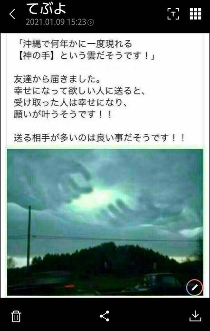 最初は、言い伝えのイメージ画像が、フェイクニュースサイトでレア現象として取り上げられ、それを信じた人が誰かに伝え・・・ざっくりとした流れ。