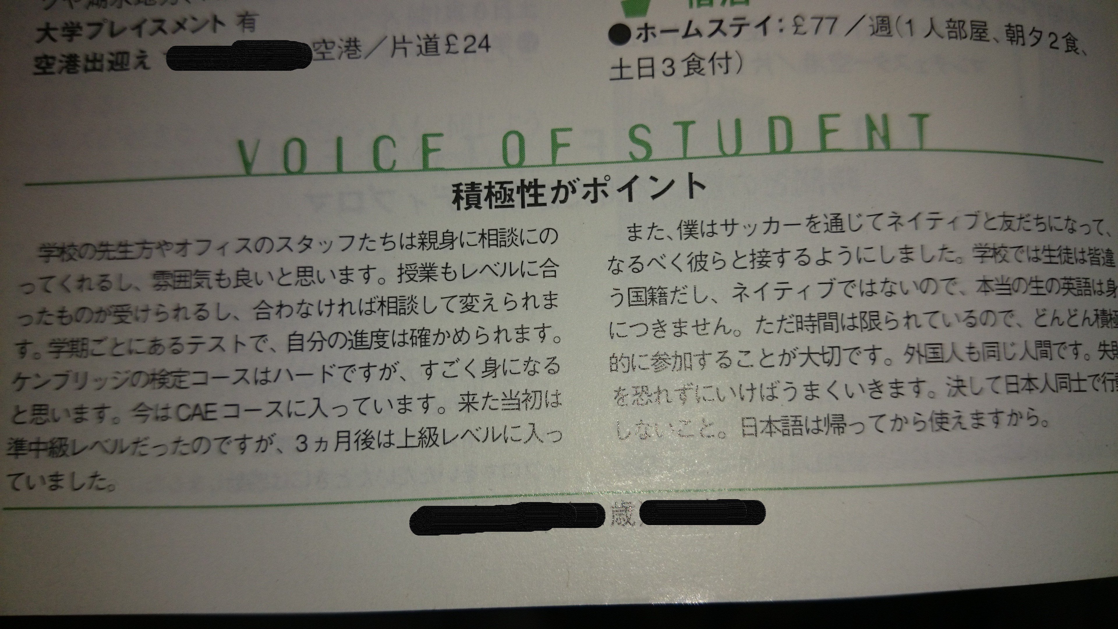 以下は過去の海外留学、イギリス・アイルランド編という本に現地で取材を受けた際に答えたインタビューの内容です。もう廃版ですけどね、時期的に何十年も前ですから。渡英当初に通っていた語学学校→大学という転換期のものです。