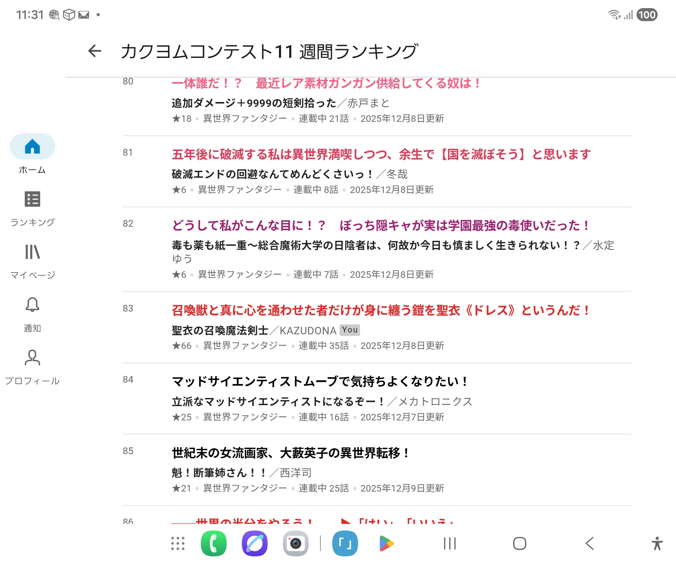 カクコン女性主人公ファンタジー部門 ランキング載ってました。聖衣の召喚魔法剣士