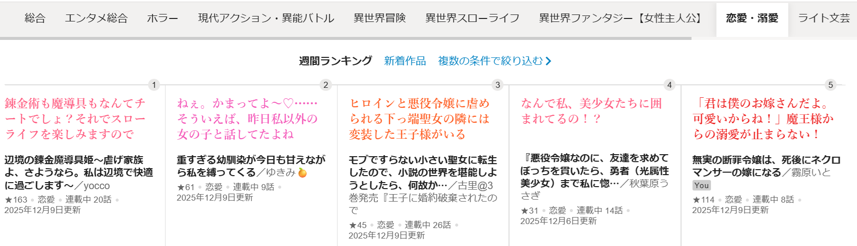 なんと「恋愛・溺愛」部門で5位を頂きました。