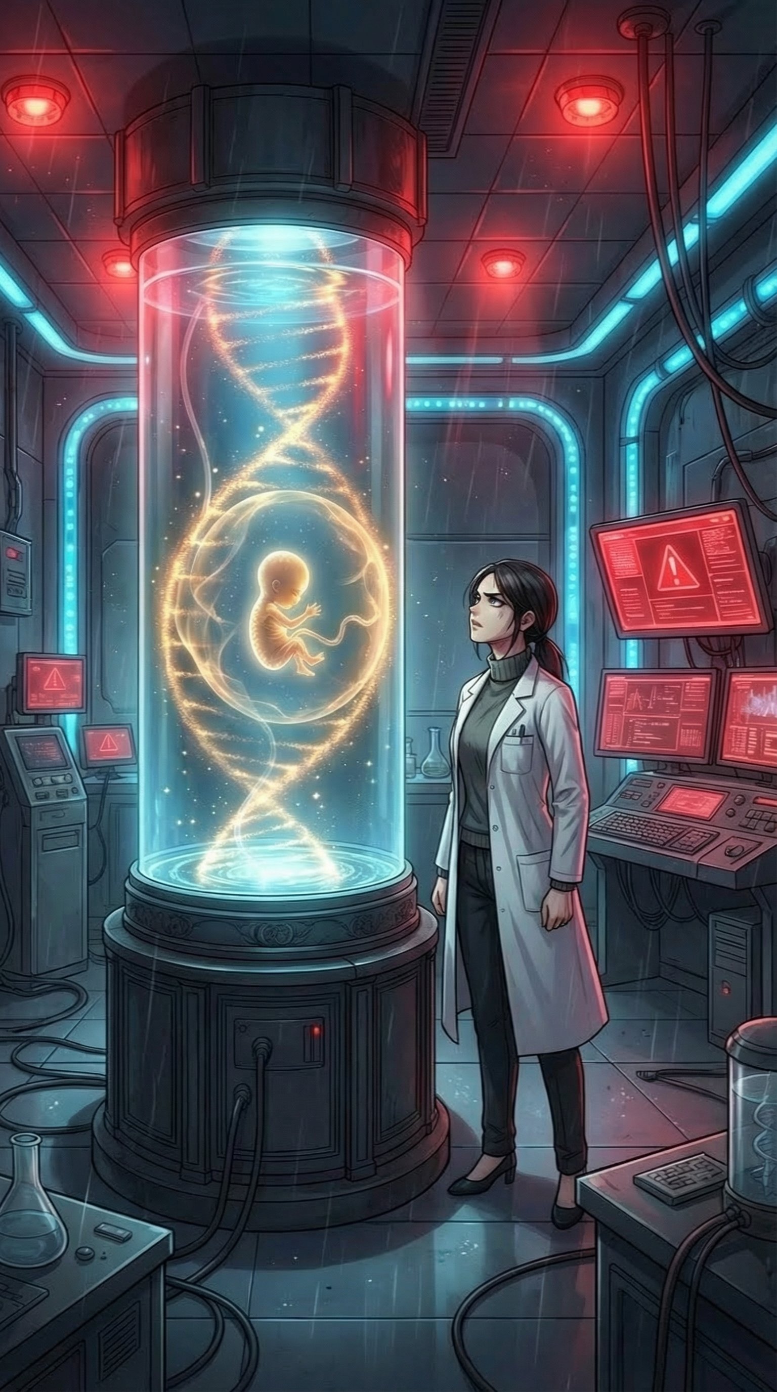 赤いラインが壁一面を走り、まるで神経が怒りに染まるように光が暴れ出す。