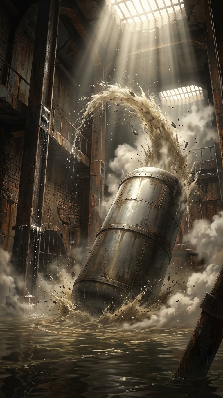 鈍い衝撃とともに濁った水が跳ね上がり、外壁に水滴がぶつかる音が響いた。