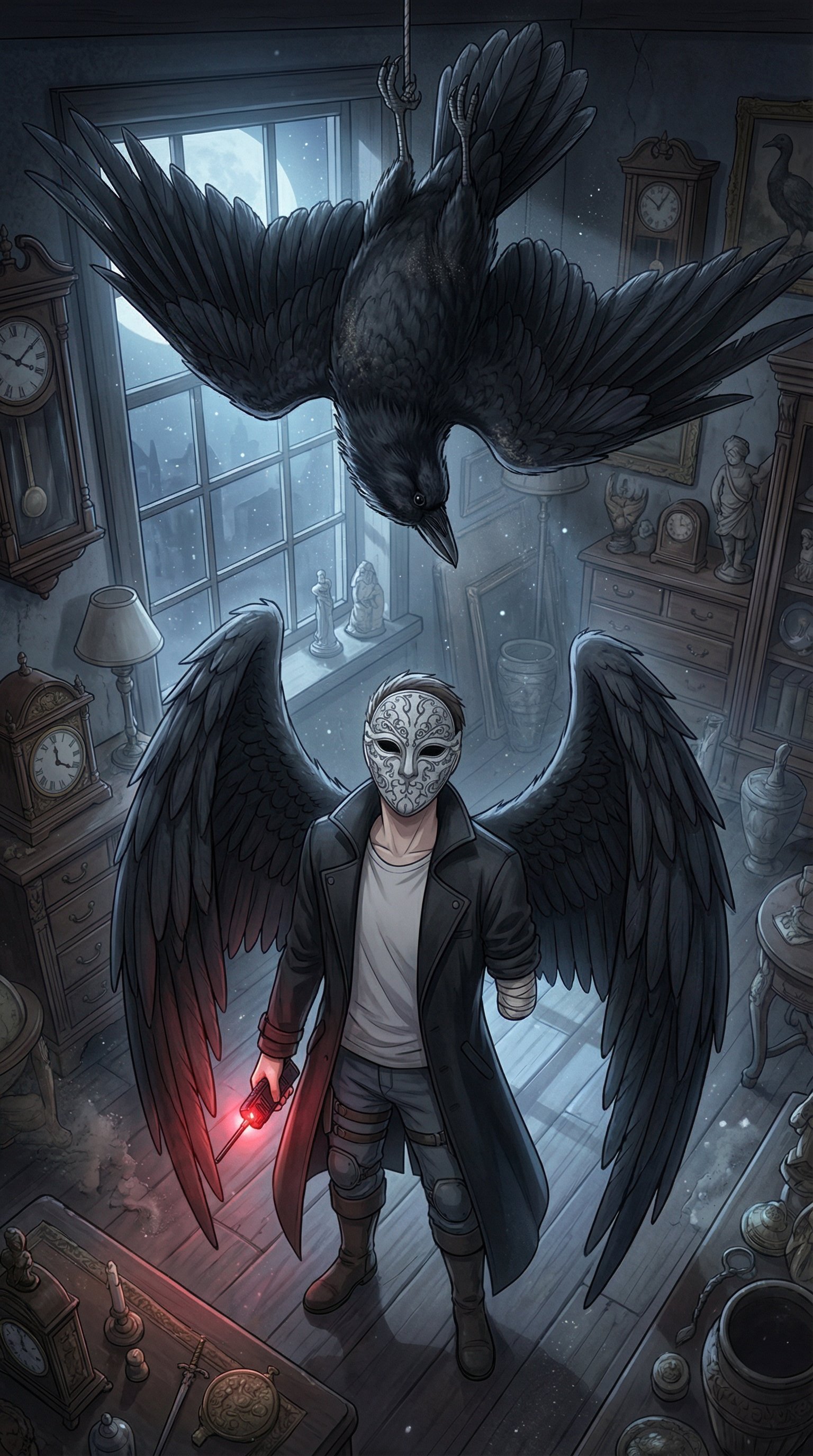 天井から吊るされた逆さカラスを一度見上げる。