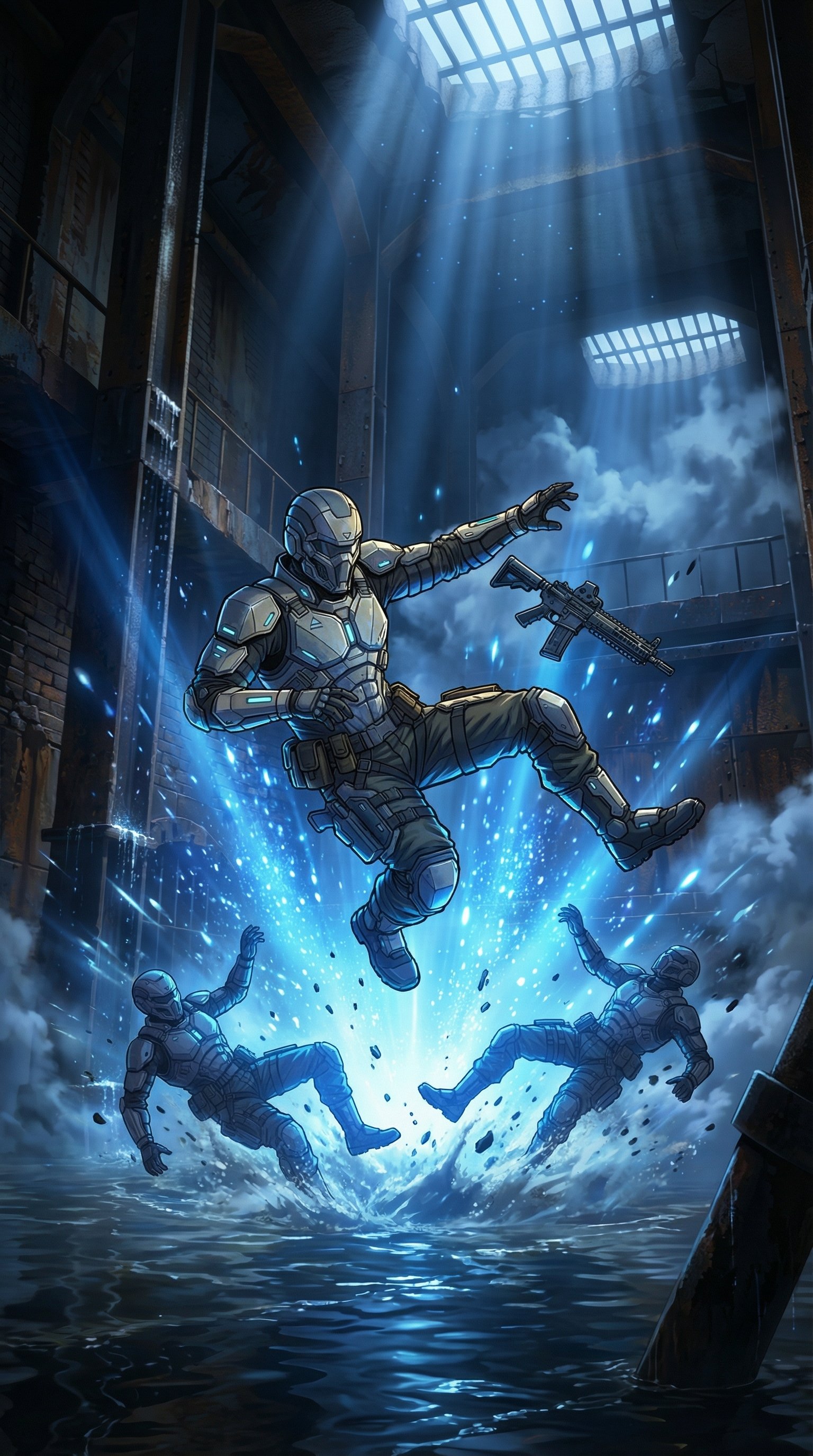 手首、足首、銃口を打ち、全員が地面に崩れ落ちる。