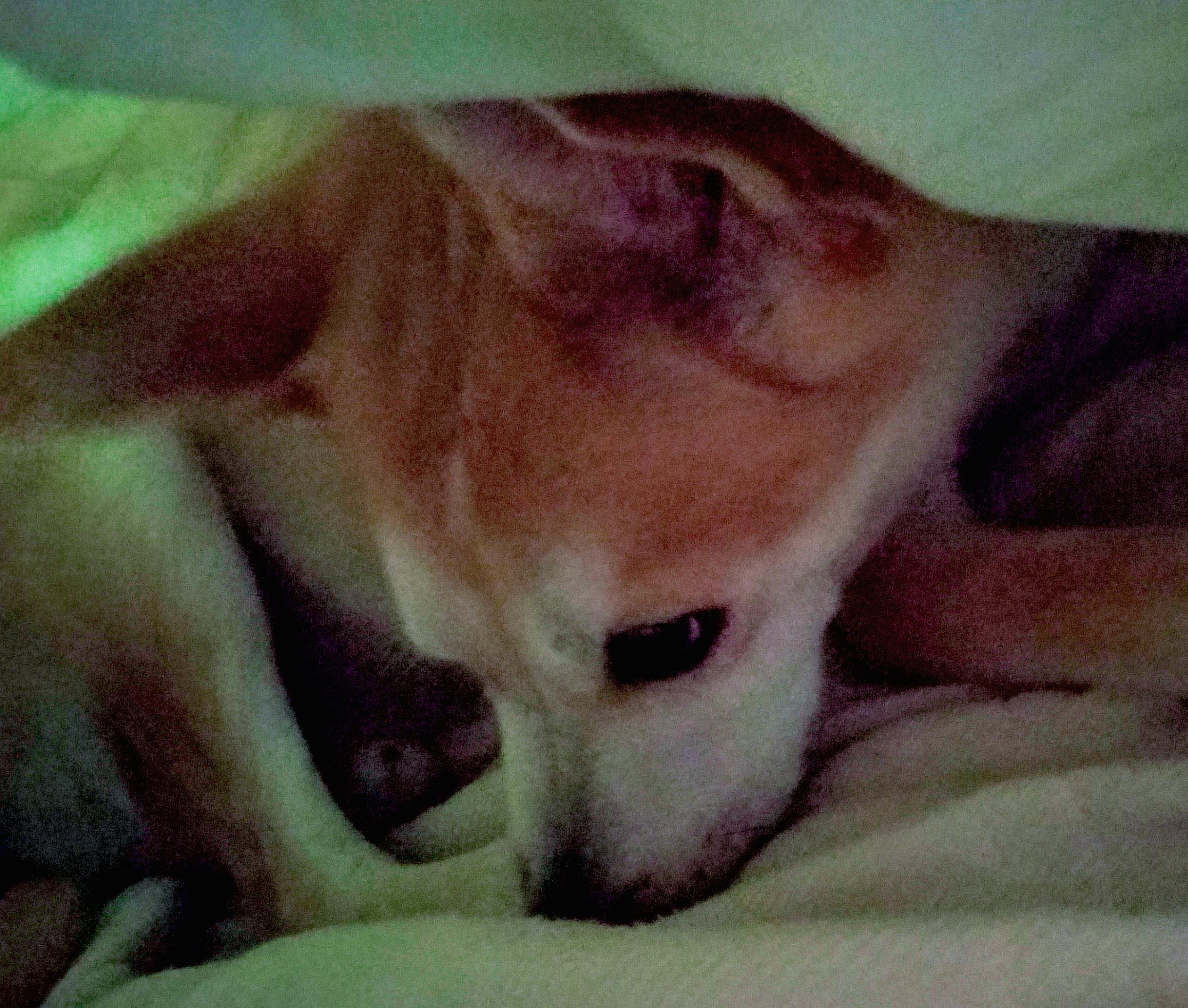 おふとんに潜って、ねむねむしているところ。