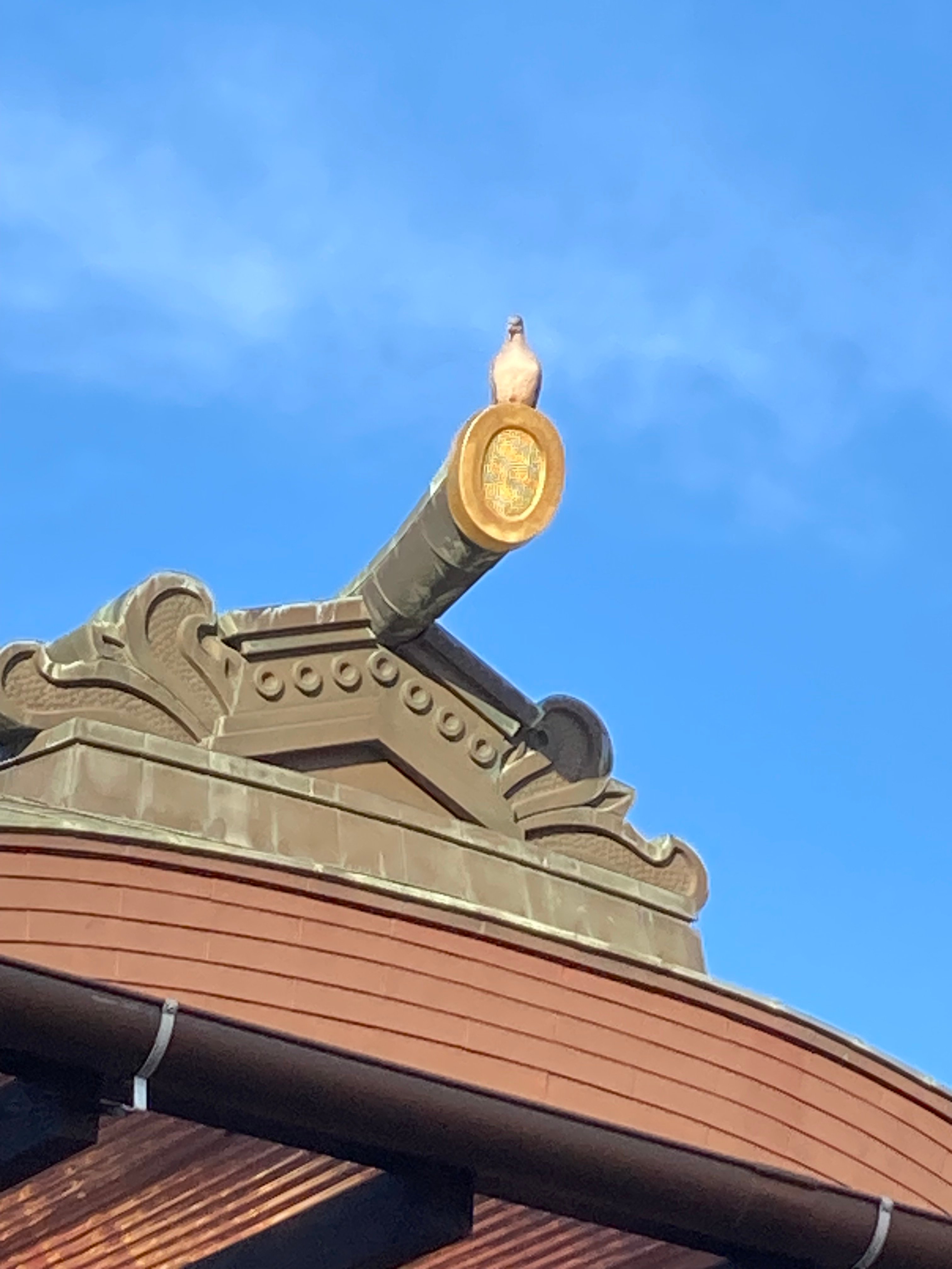 鳩が一羽……彼は、好物の豆を狙っているのだと思われる!