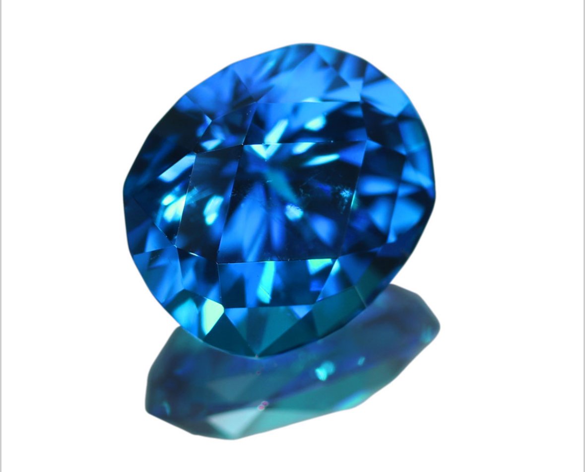 パライバトルマリンは青緑色の宝石で、発見されたのは割と新しく、独特のネオンカラーがあります。青色が濃いとお値段も価値も高く、薄いミントグリーンはお安くなります。以上、宝石事情でした。下の画像は青色が強いパライバトルマリンのルースです。