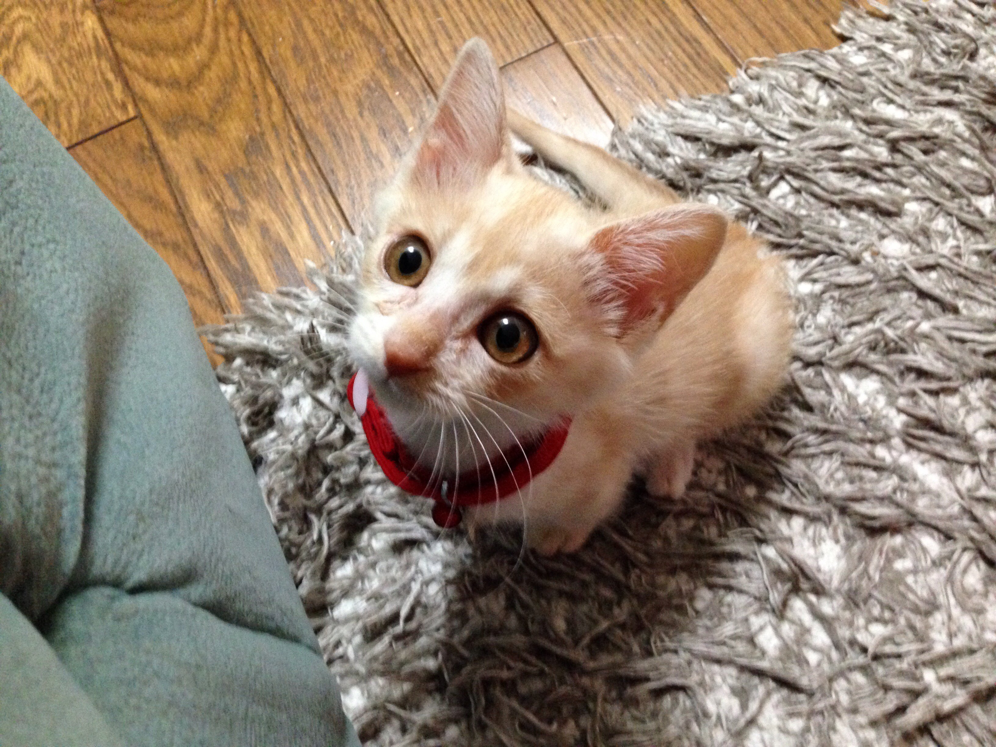 添付は、にゃんすけ先生が保健所から我が家にやってきた日の写真になります。