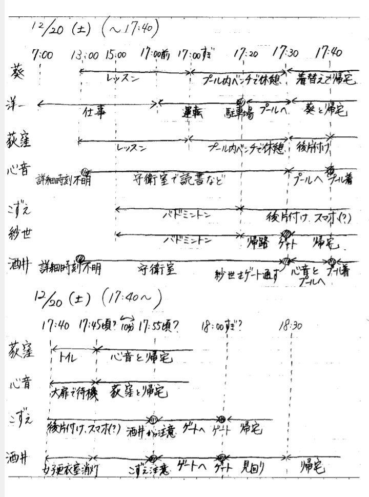 【ややネタバレ注意】『密室大戦』登場人物行動表 12月20日(土)