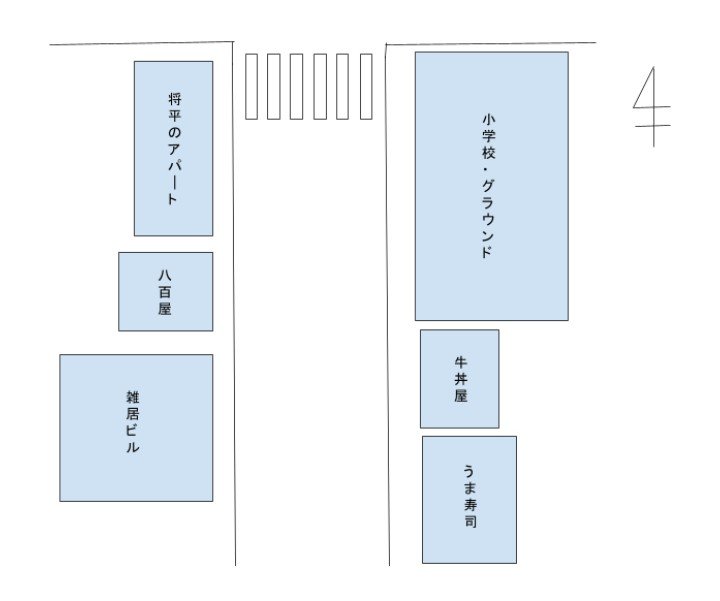 将平のアパートと『うま寿司』の位置関係を表した地図です。