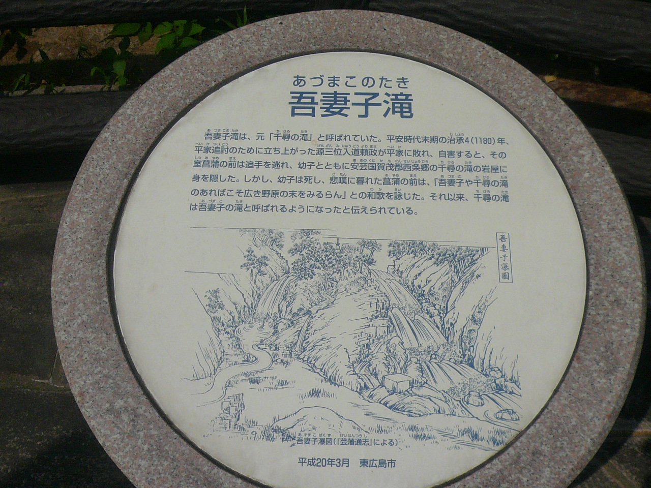 添付画像は物語の始まりである吾妻子の滝に置かれた碑文です。「源平菖蒲御前」はこの伝説の物語です。