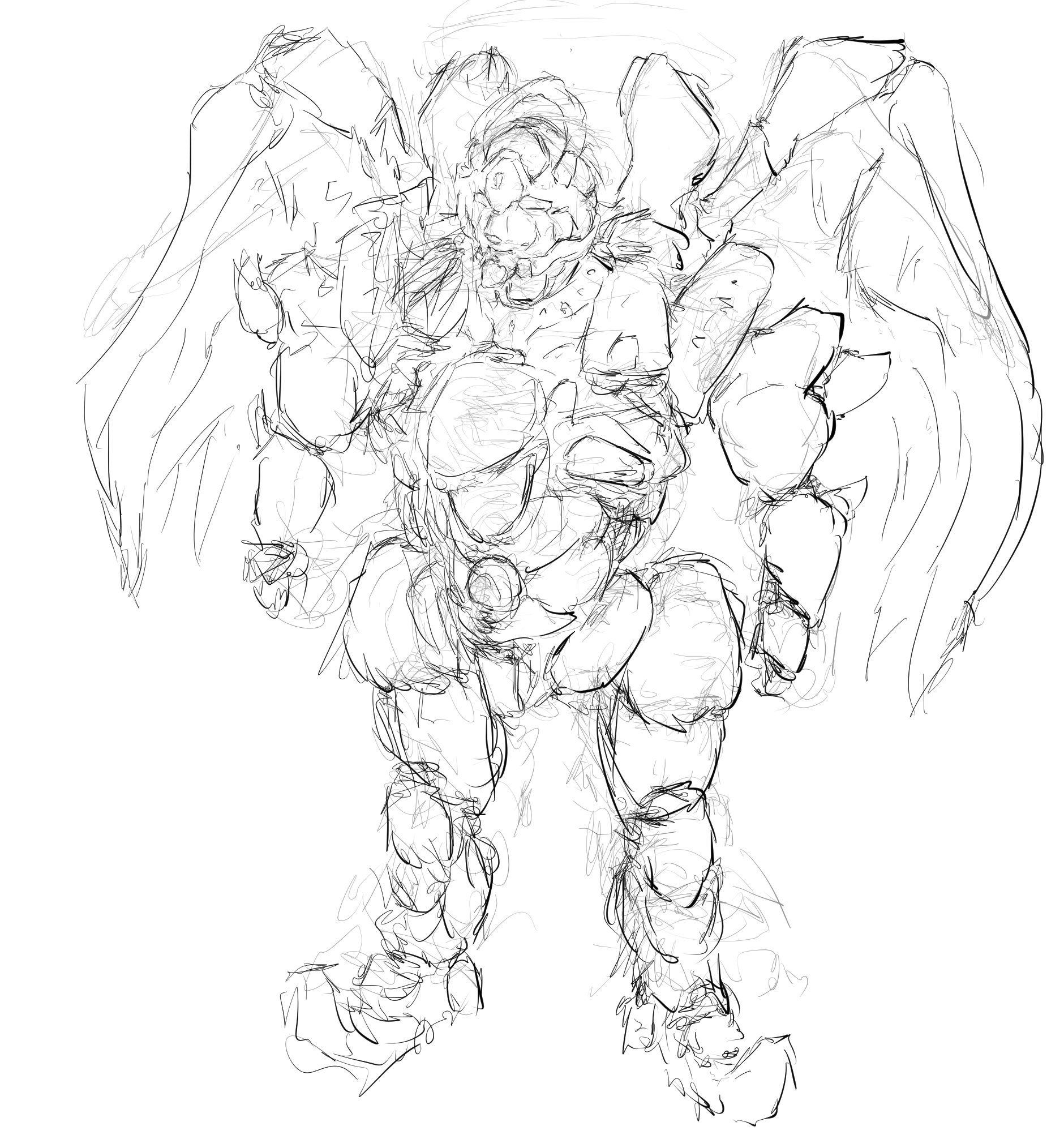 西洋の神様の使い的なのがデザイン(だったはず)の根底にあるだけあって、わけがわからないことになってるけど、これをこのままカタチにしちゃったらダサくなるような? ちょっとありがちなイメージになるのかな(^_^;) てか、こんなの完成するのかなwww