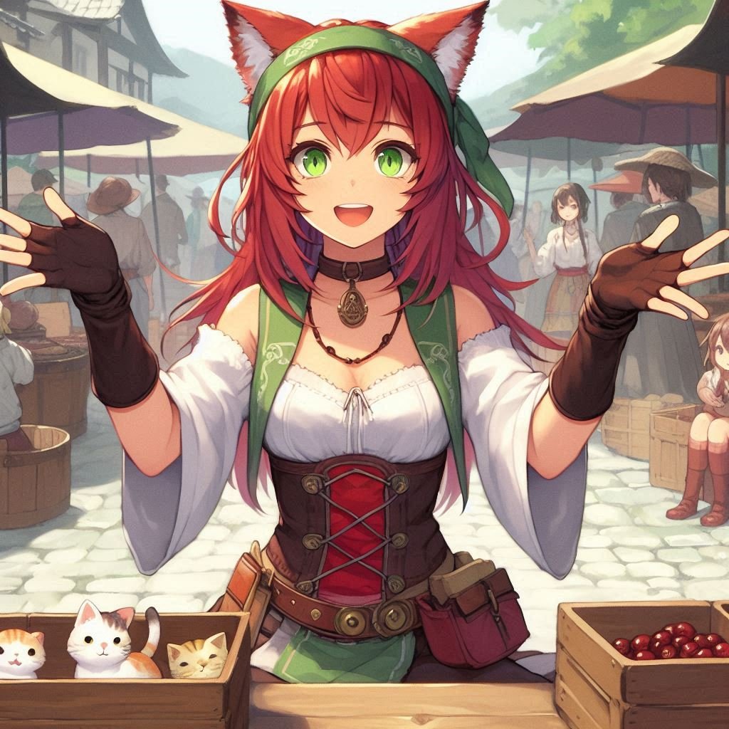 絵は姫騎士レリアにて聖女さまの聖水をセイくんに売りつけた女商人ミニャさんです。