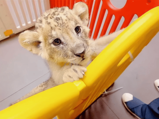 まだ生後3ヶ月のライオンの赤ちゃんで、