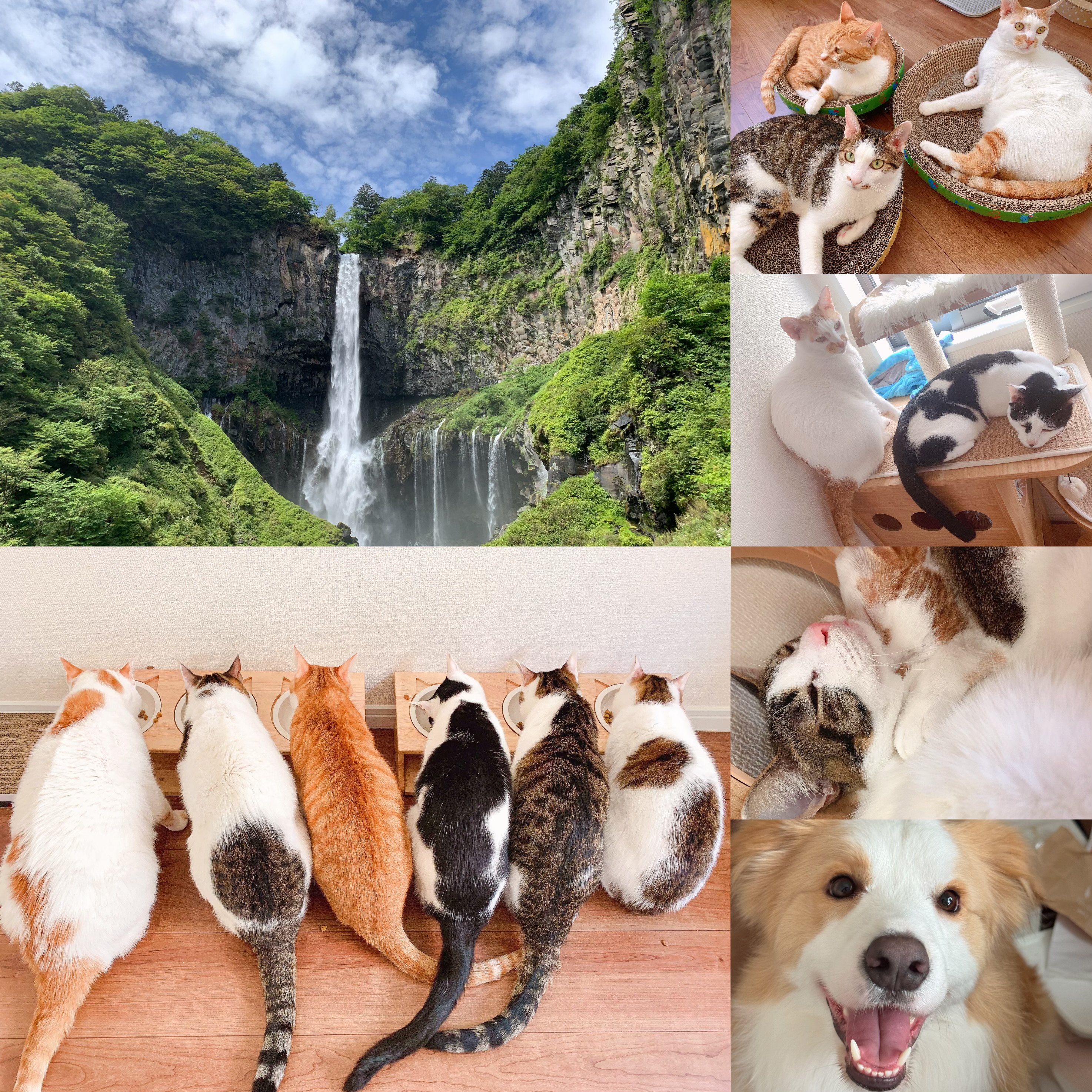 そして今日からは、3匹の猫たちの冒険(世界を愛する旅)が本格的に始まります!ということで、ちょっと群れの写真を整理してみました~今日はシャンプーしてトリミングしたばかりのワンちゃんも乱入☆