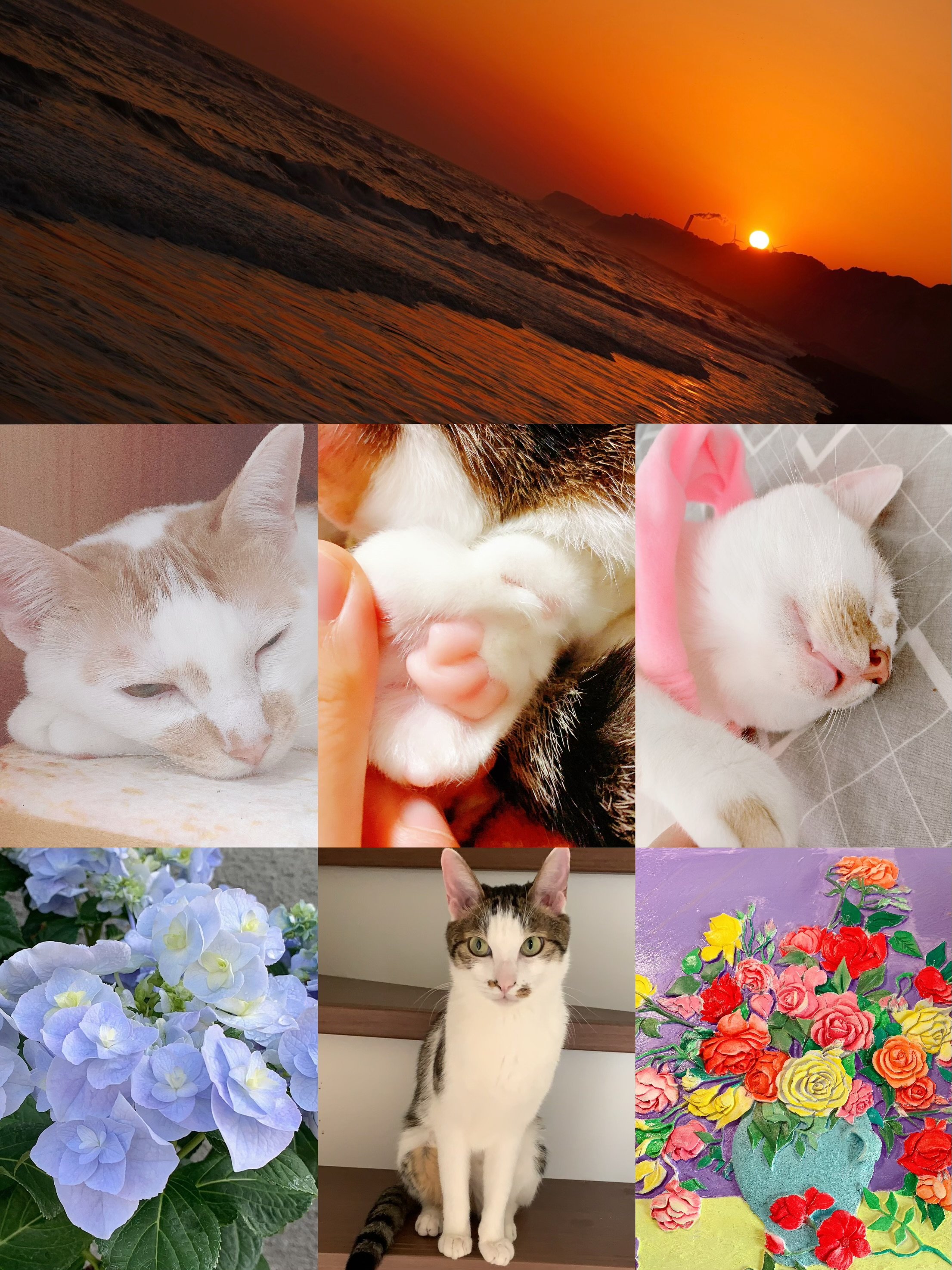 一番上の夕焼けの海岸、すごく綺麗ですね。