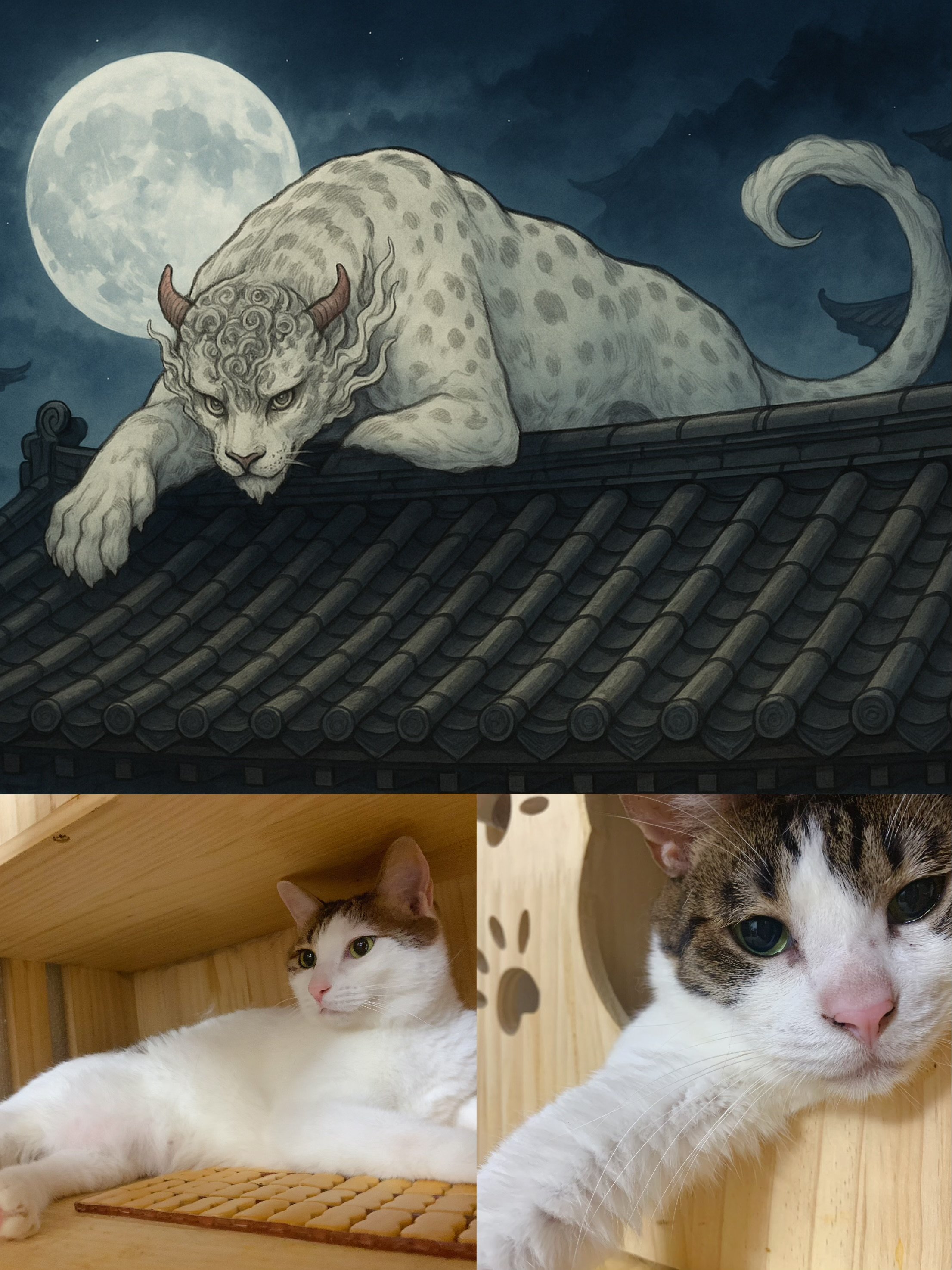 『百妖百酒』妖怪図録|孟極:虎?豹?いいえ、ネコ科です。※広報猫付き!
