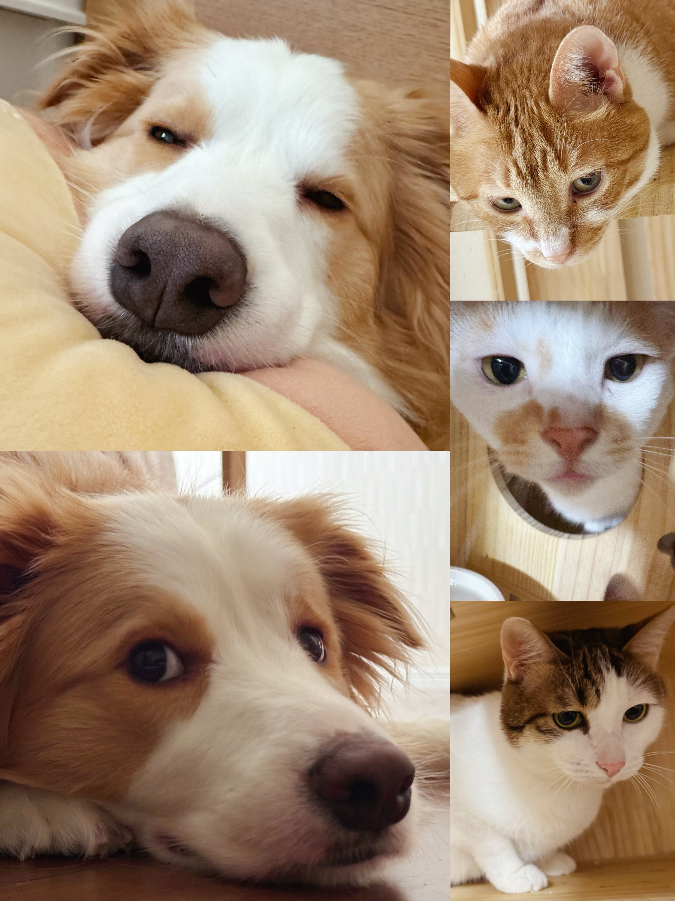 みんな可愛いですね。右上の猫さんはみかんでしょうか?