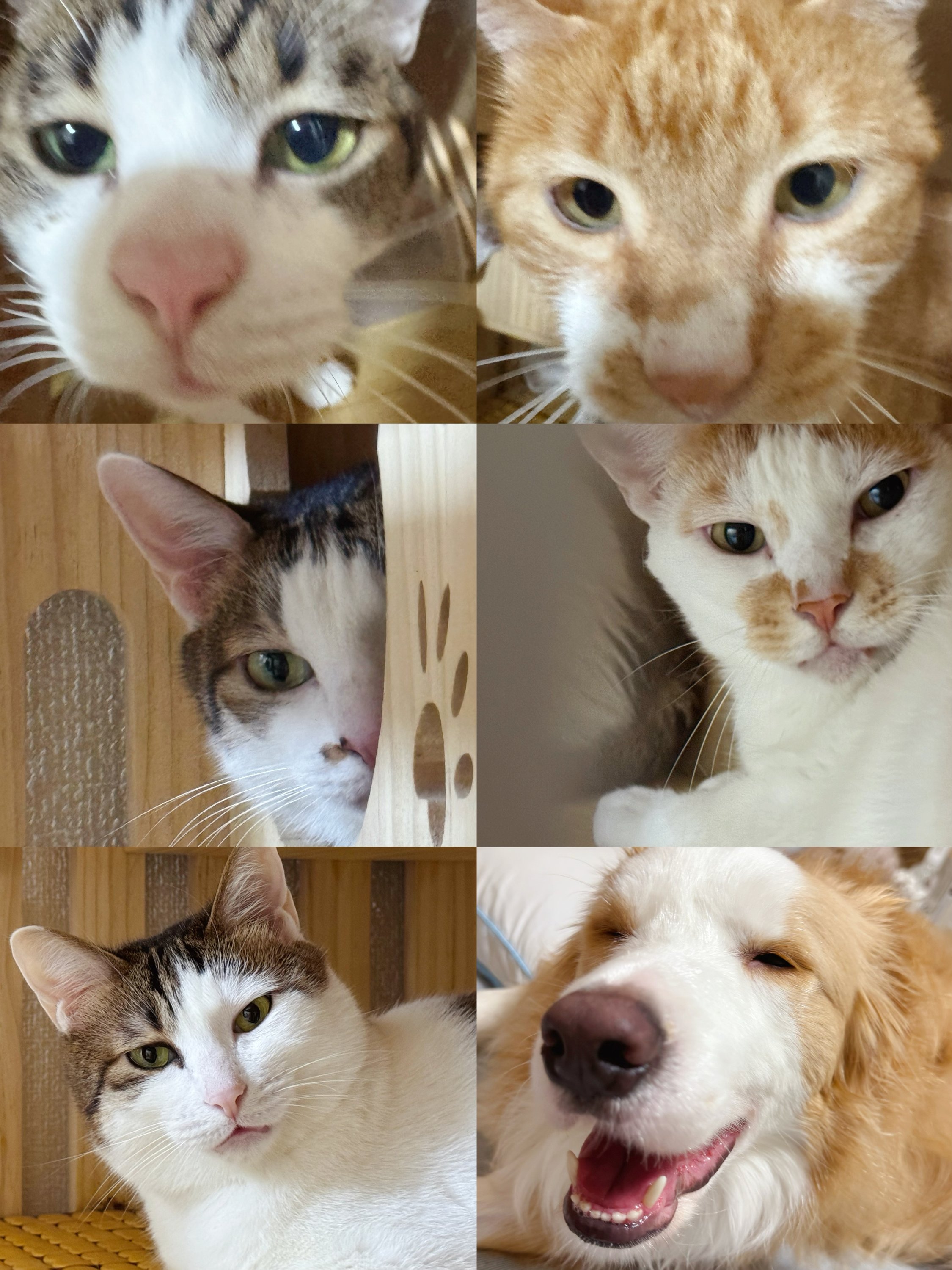 さっき偶然また聴いて、なんだかテンション上がっちゃいました。というわけで、猫5匹+犬1匹の変顔(?)写真を一気に撮っちゃいました。