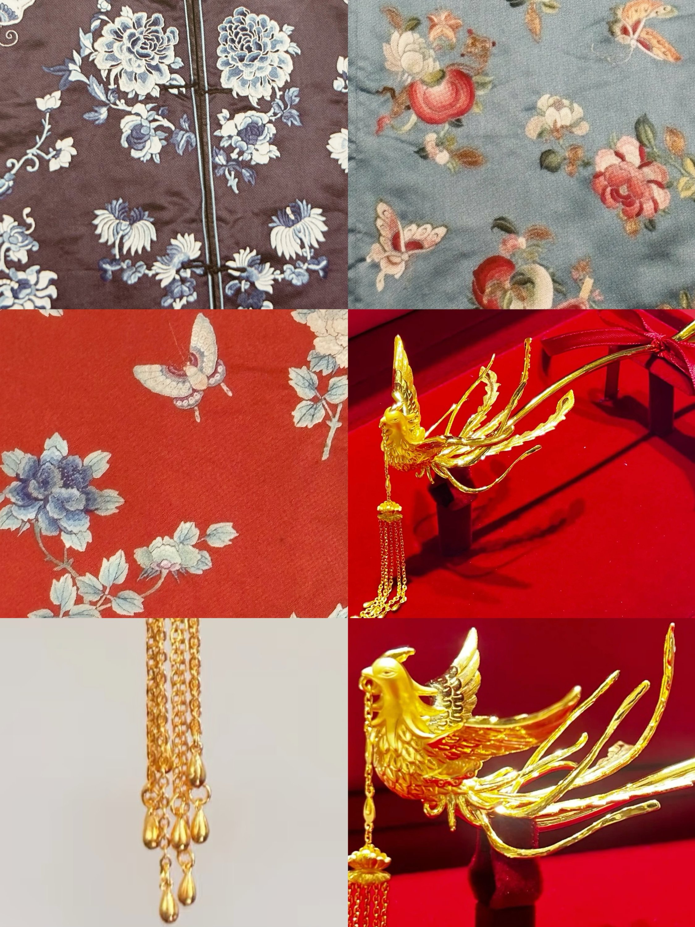 鳳凰については多くを語らなくても、古来「龍と鳳凰」は中華風における最高位の組み合わせだと知られていますね。今回は、実際の鳳凰簪を皆さんに見てもらいたくて、現代のものを撮影しました。古代の彩色された簪の写真も持っていますが、婚礼では基本的に金色が用いられるため、香港で購入できる現代の金の鳳凰簪を紹介します。