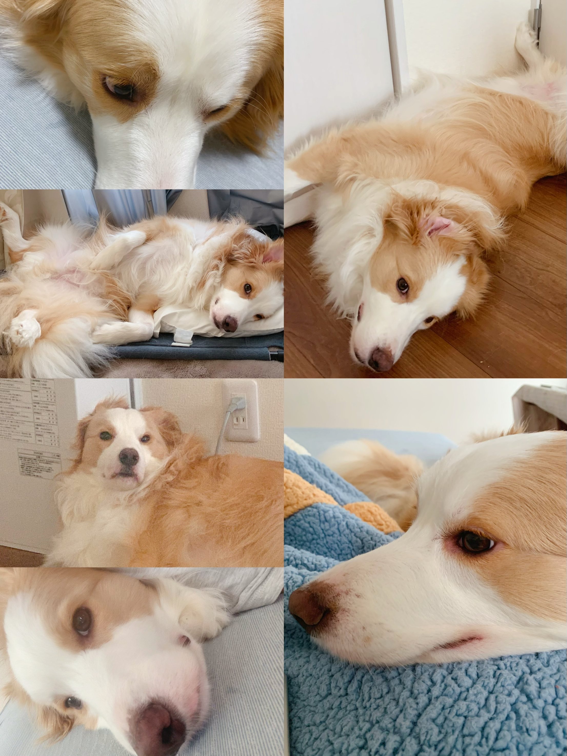 添付の写真は、この数日台風と雨でお散歩に出られず、ひたすら寝ていたうちのワンコです🐶