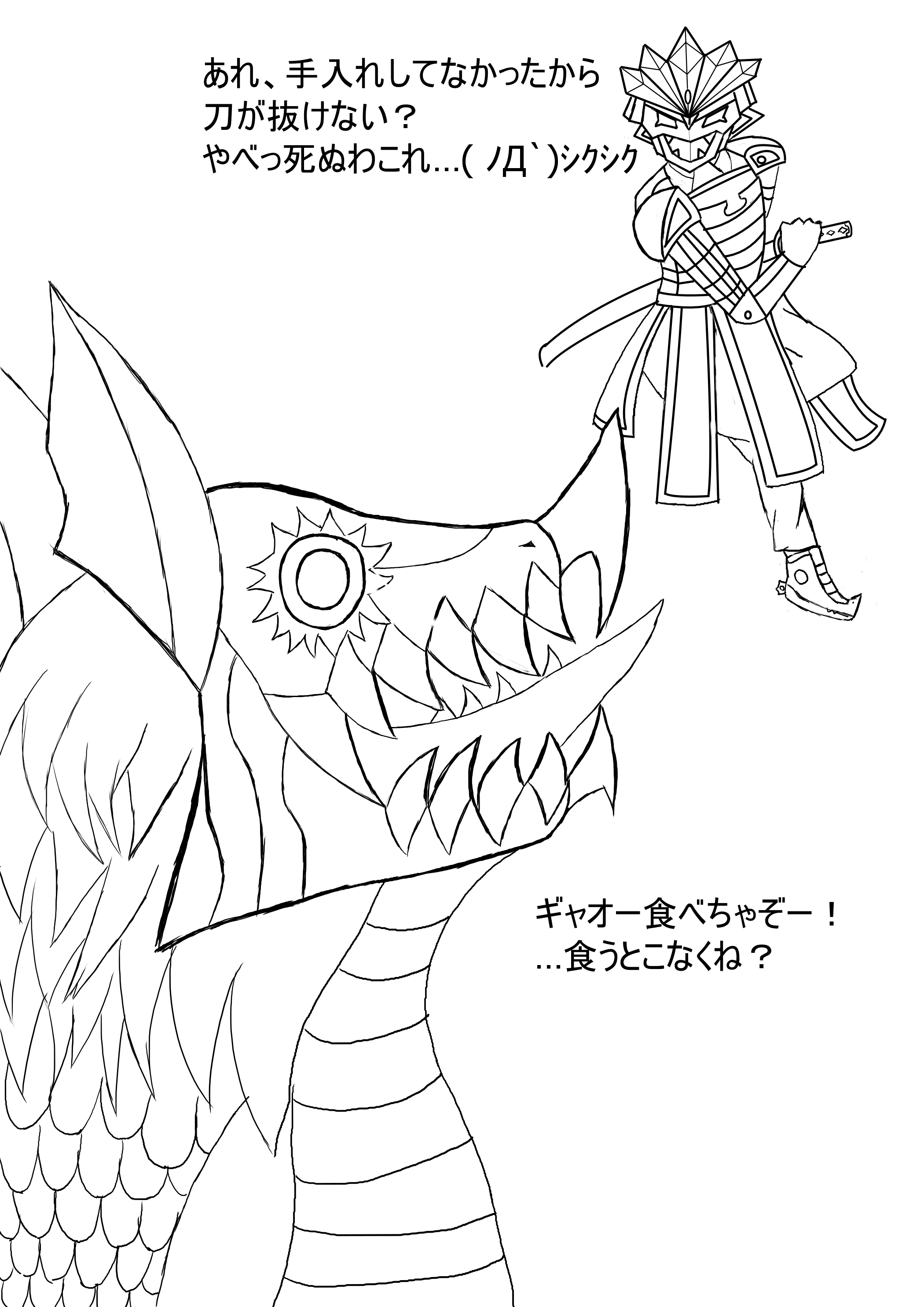 つい最近短編の「喰人鬼と隻眼の少女」を更新しました。当然のごとく閲覧数は絶望的です。そんなわけで機材も新調したこともあり、この短編にちなんだイラストを描きましたので掲載します。ラフに近い線画です。セリフはお話と全く関係ありません。