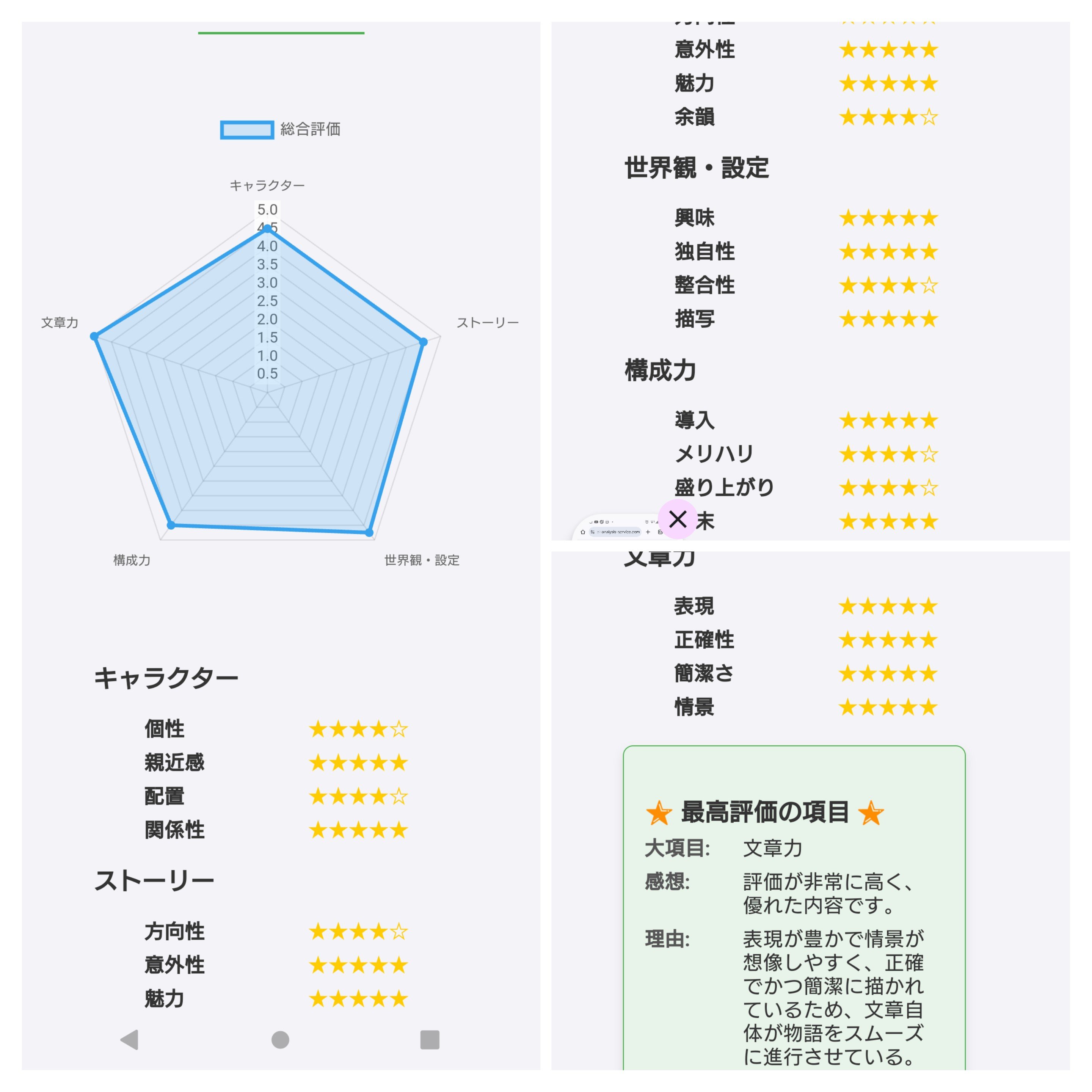 Novel Insightという、一万文字までの小説をAI分析してくれるサービスがあります。