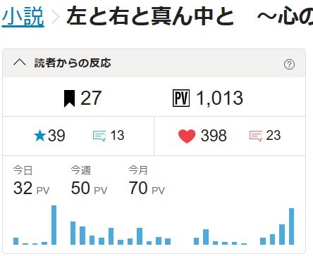 ここ四日程右肩上がりですが、更新のタイミングとも被ってますので、微妙ですがXで左の話を毎日公開を開始した影響も有るかもしれません!、だとうれしいなぁ。