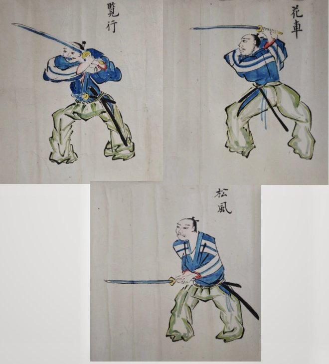 左上が陽之太刀、右上が陰之太刀、下が光陰之太刀になります。(新陰流三学之巻より)