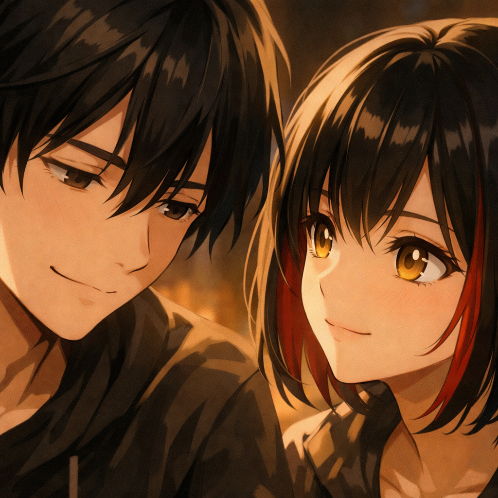 赤いインナーカラーの覗く黒ボブが、炉の灯りに柑橘系の香水の匂いと一緒にやさしく揺れている。