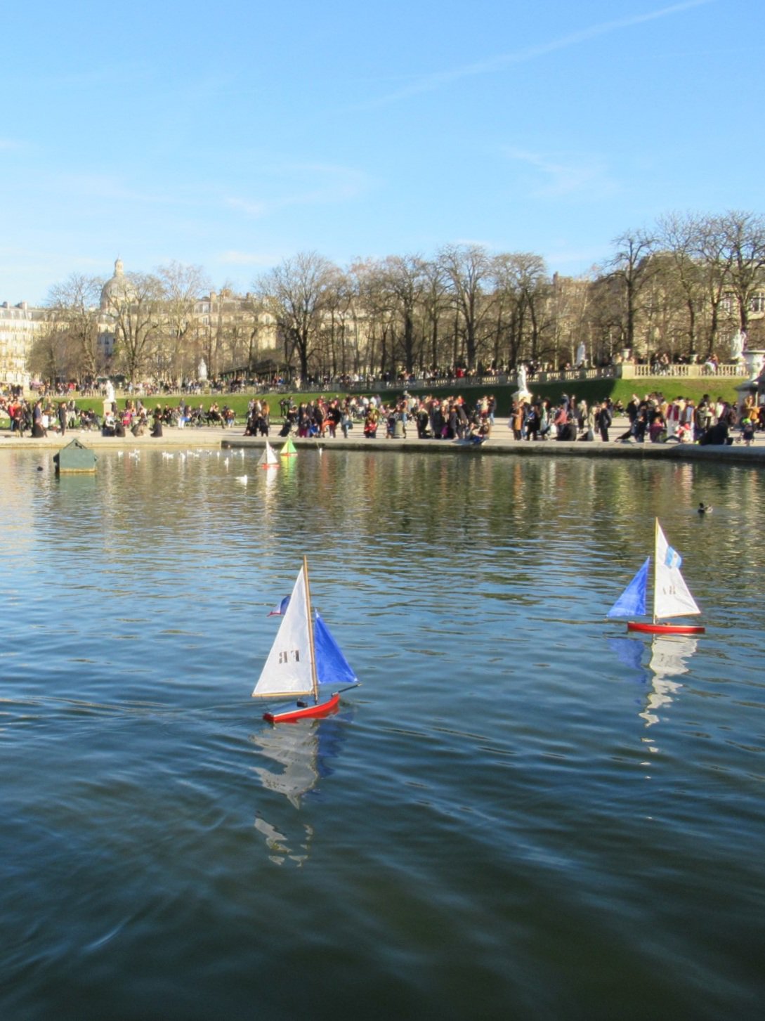 写真はエッセイに書いたリュクサンブール公園の池です。おもちゃの貸しボートが浮かんでいます。