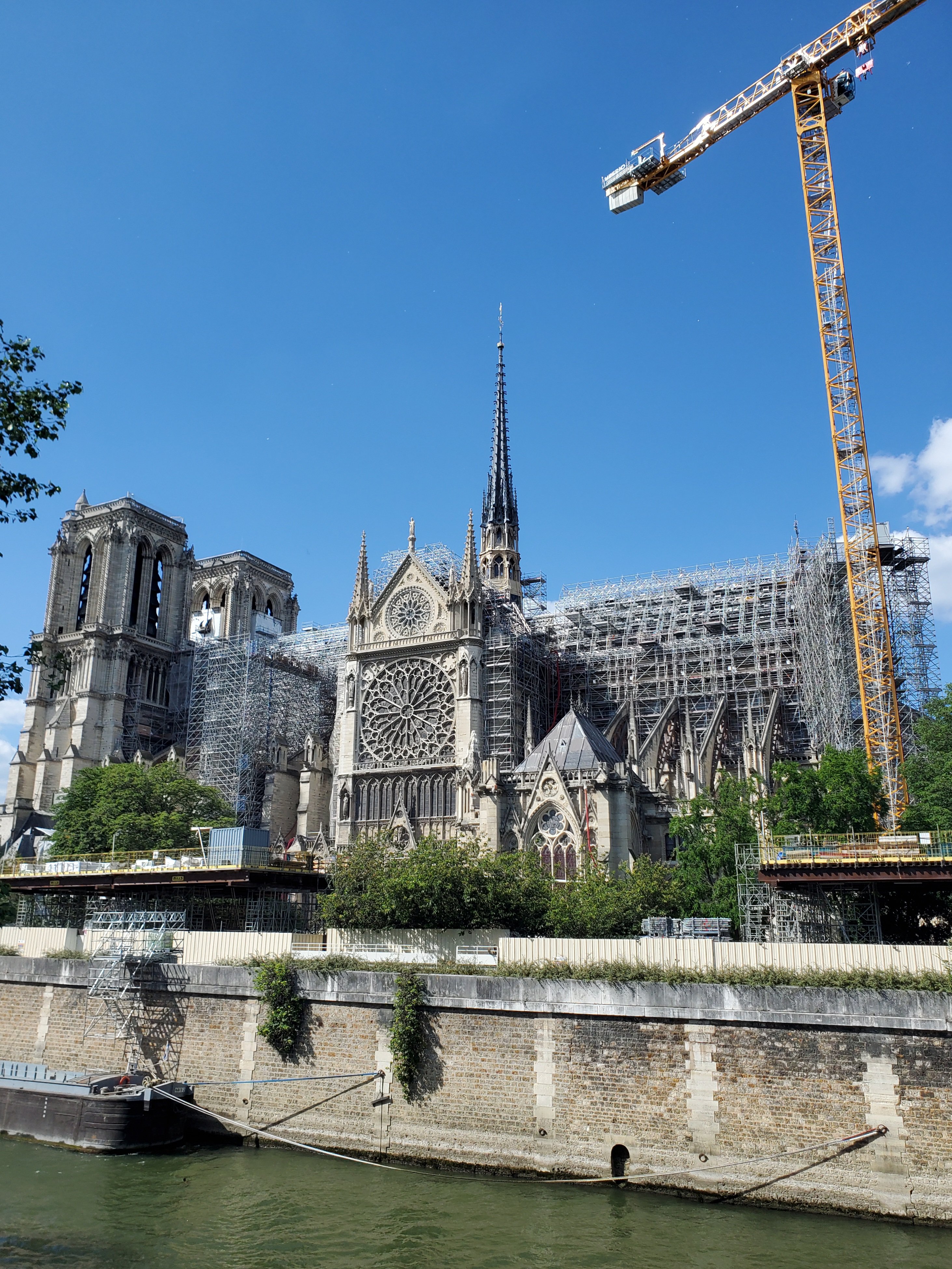 そのあとぶらぶら歩いてノートルダムの近くまで来たら、火災のときに焼け落ちた尖塔が復元されていました!