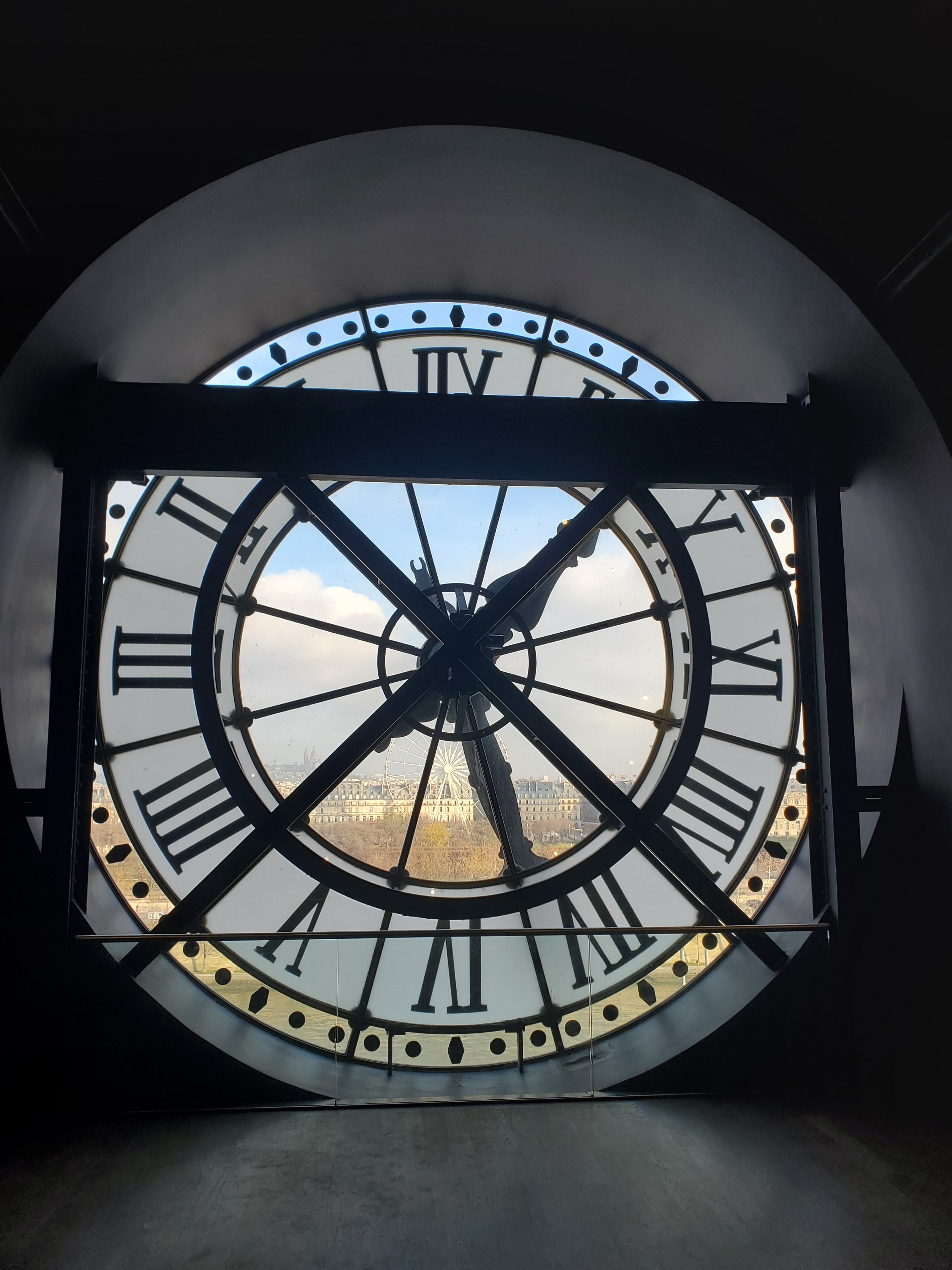 一番の気に入りはこの5階の印象派のフロアにある大時計の裏。巨大な文字盤の向こうにパリの景色が浮かんでいるのが最高です。ここはいつもたくさんの人が写真を撮っているんですが、今回は朝イチだったのもあって無人の時計が撮れました。