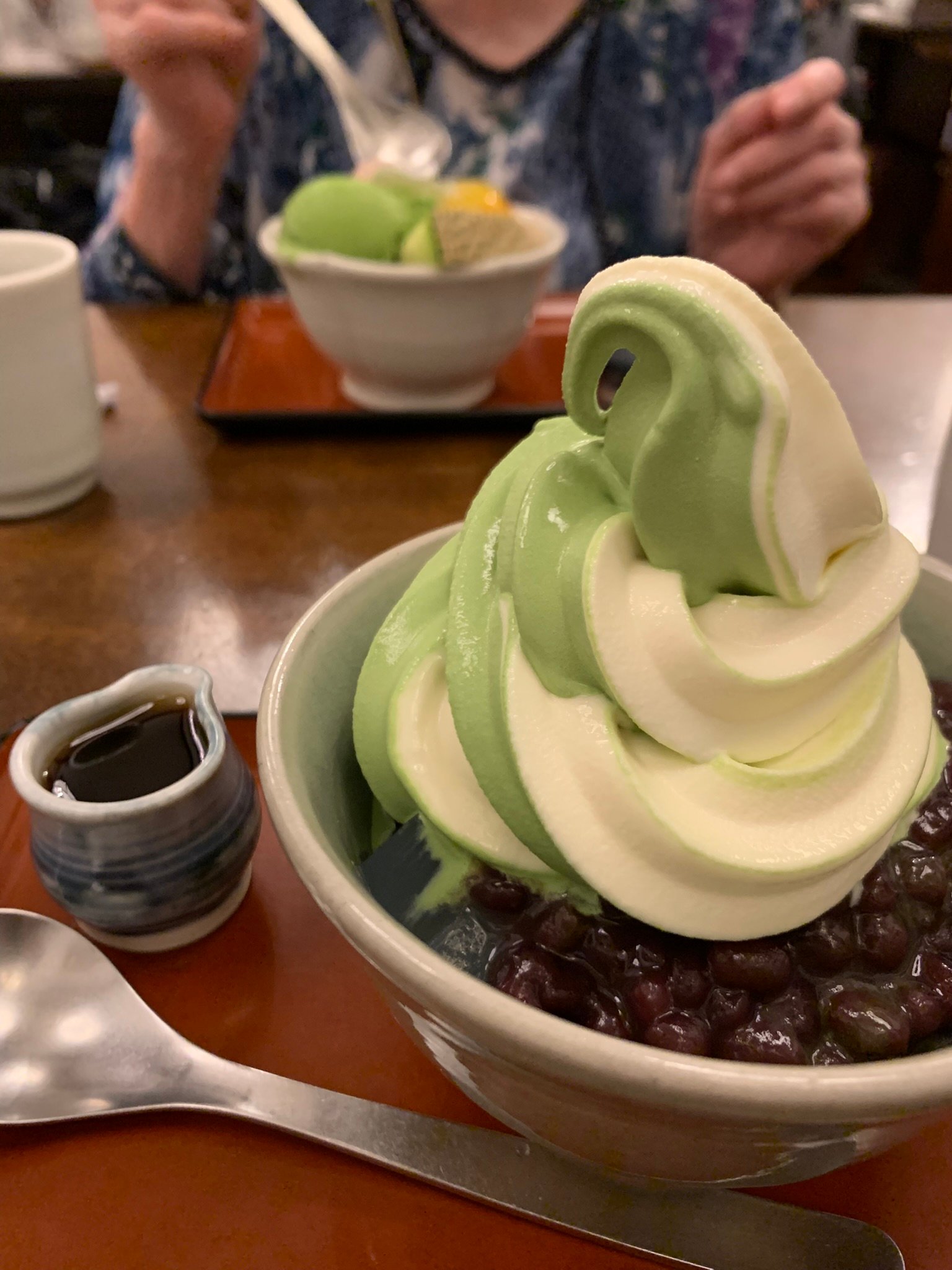 銀座「おかめ」のクリームあんみつミックスソフトチョイスです。