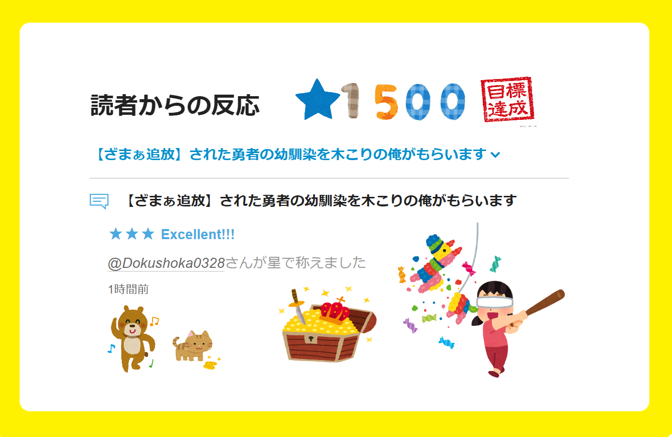 重ねて、読者の皆さま。そして1500という夢を叶えてくれたDokushoka0328さま、本当にありがとうございました。